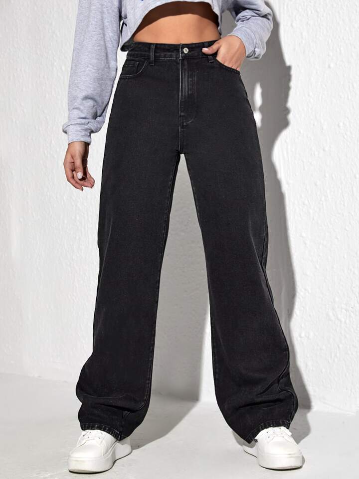 Jeans mit Schmetterling Muster, breitem Beinschnitt