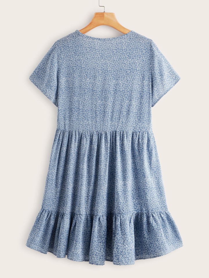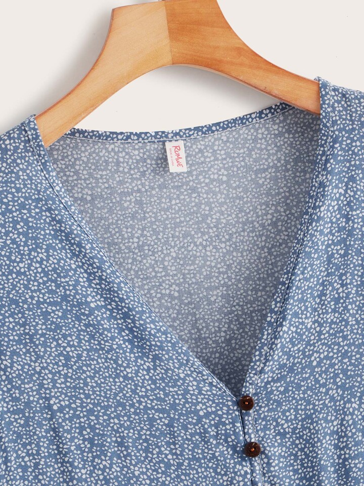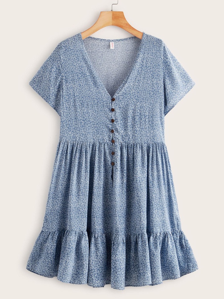 Blau Knöpfen vorn Blümchen Böhmisch Kleider