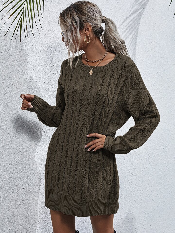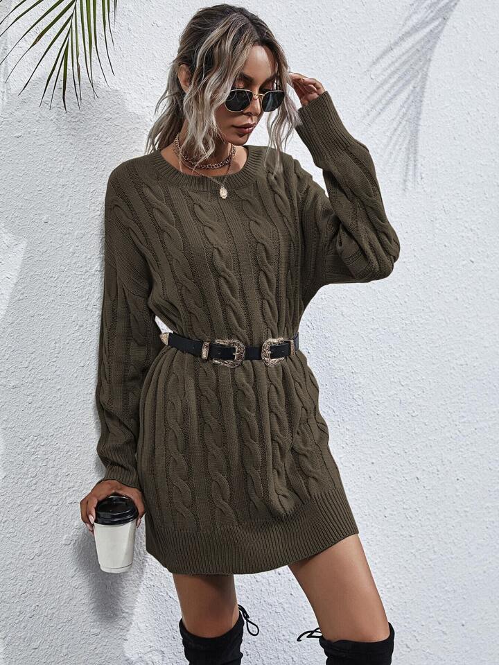 Strick Pulloverkleid mit sehr tief angesetzter Schulterpartie ohne Gürtel