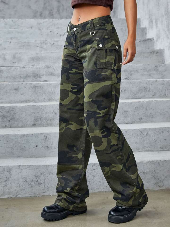 Jeans mit Camo Muster, breitem Beinschnitt