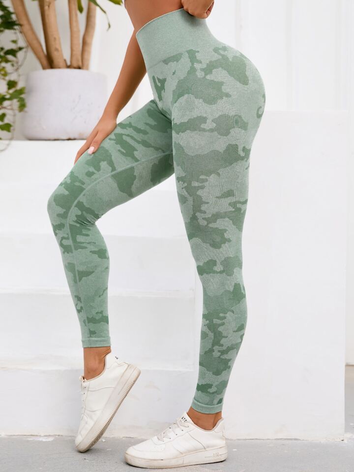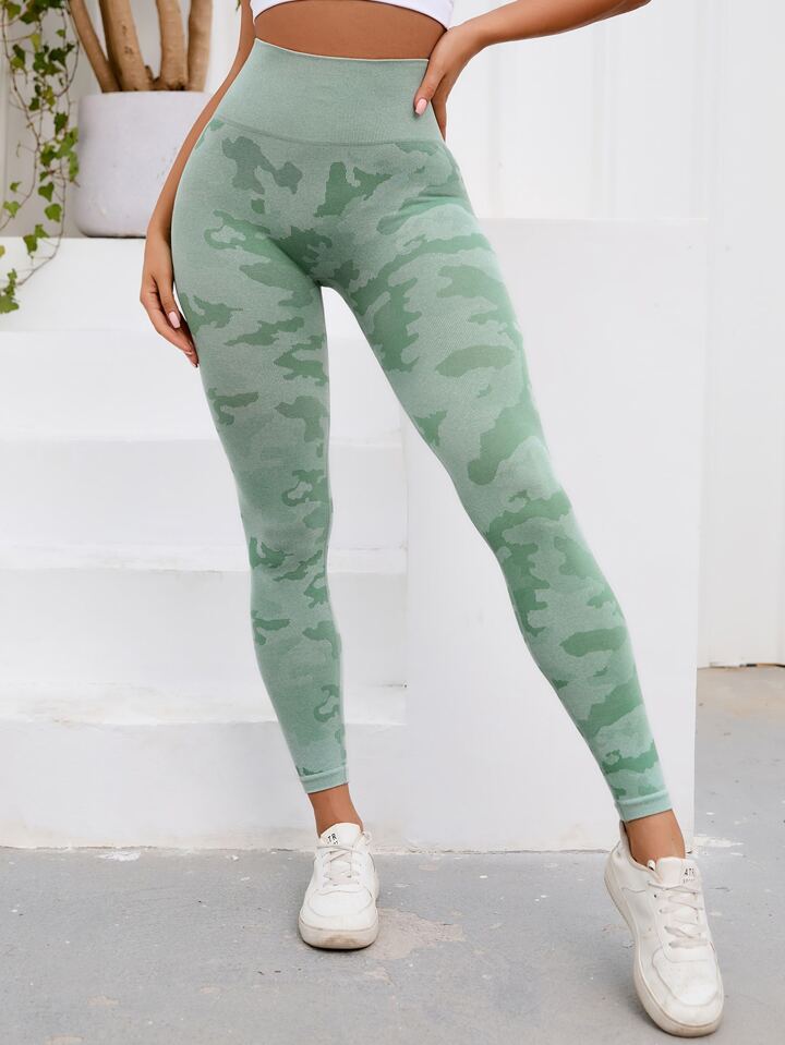 Sports Leggings mit Camo Muster, breitem Taillenband