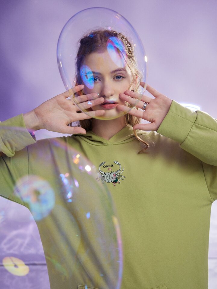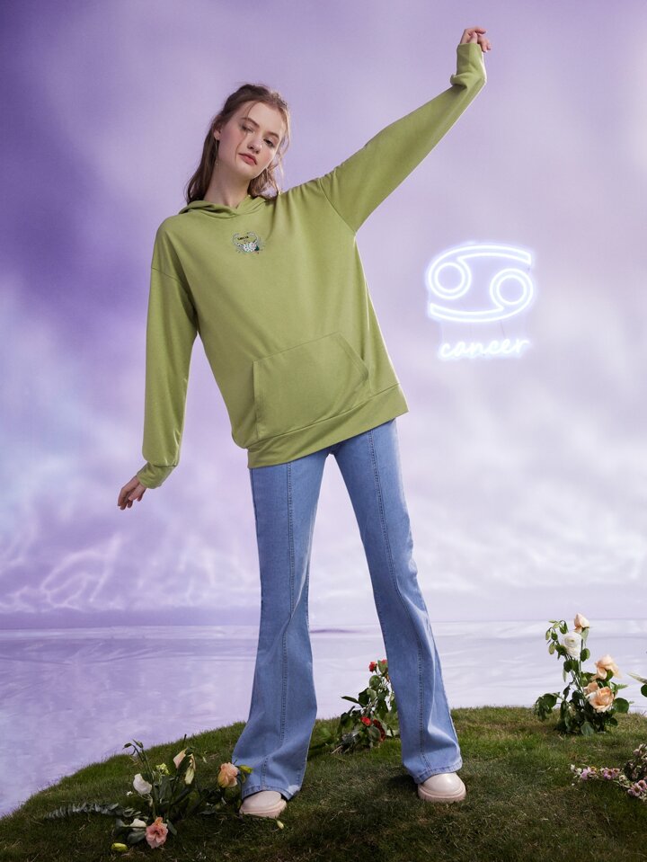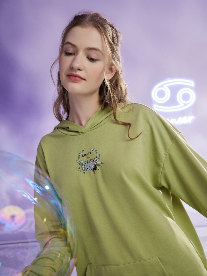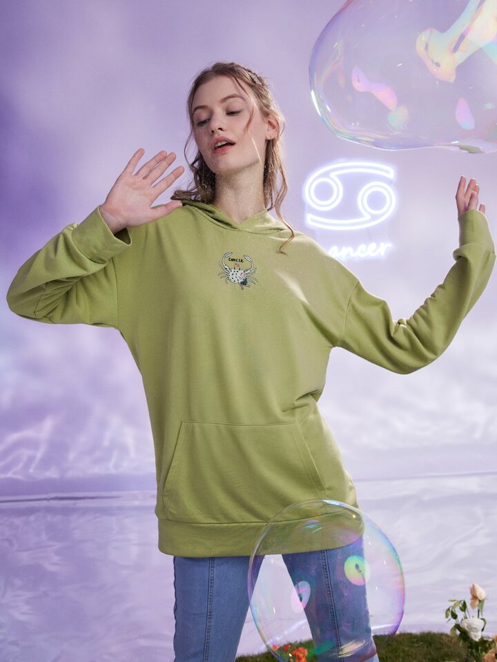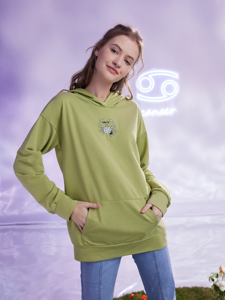 Hoodie mit Buchstabe Krabbe Grafik, Känguru-Tasche