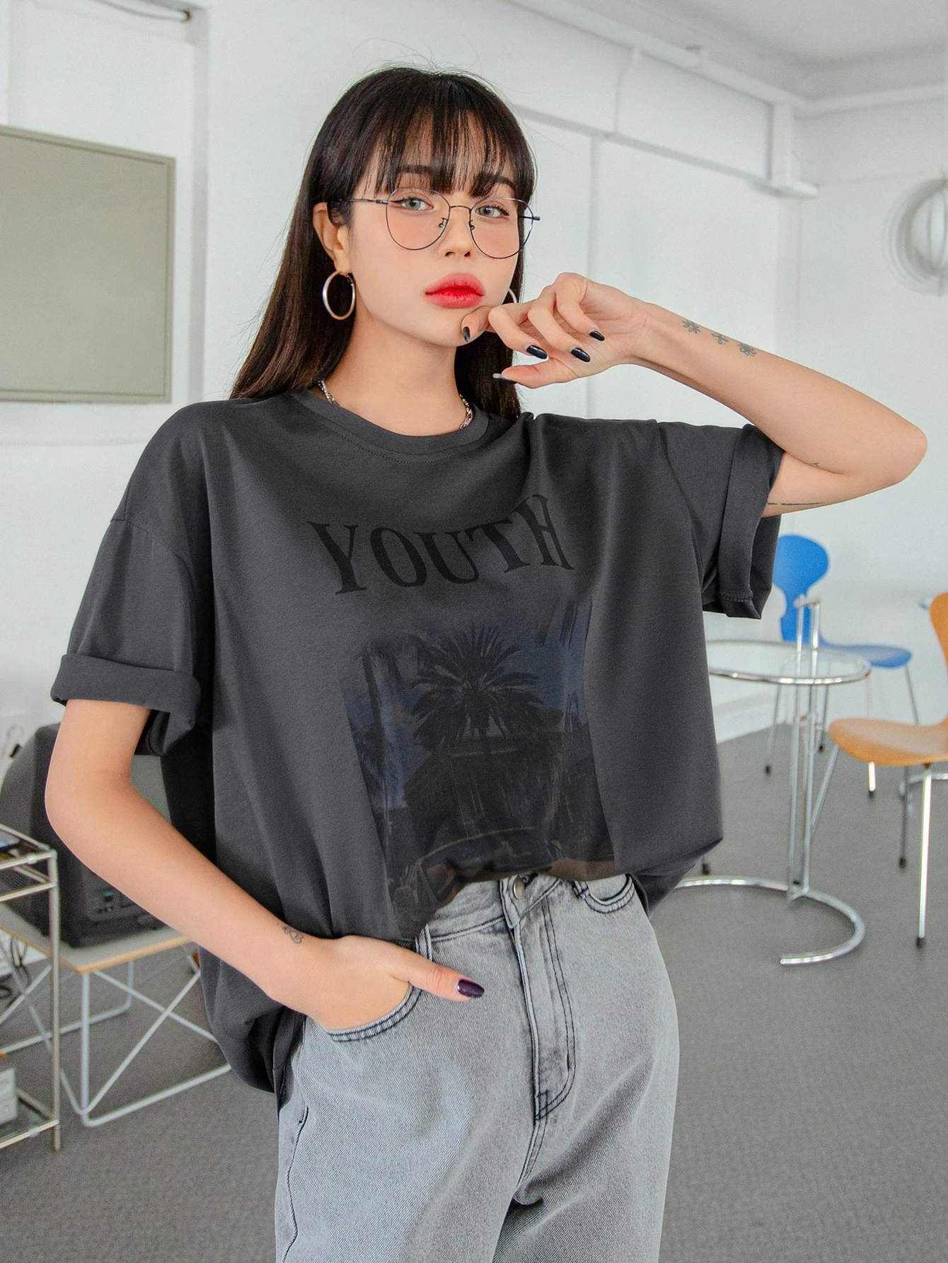 Drop Shoulder T-Shirt mit Auto & Buchstabe Grafik