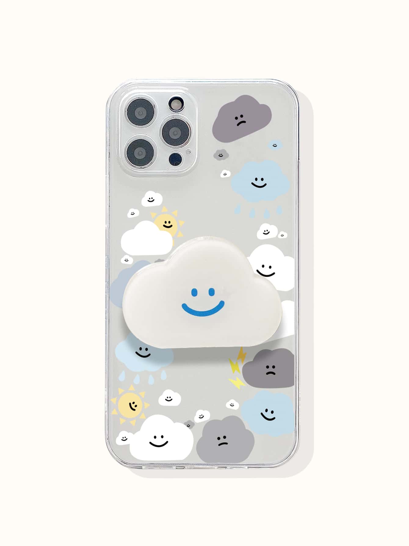 Transparente Handyhülle mit Cartoon Wolken & Stand-Out Handygriff