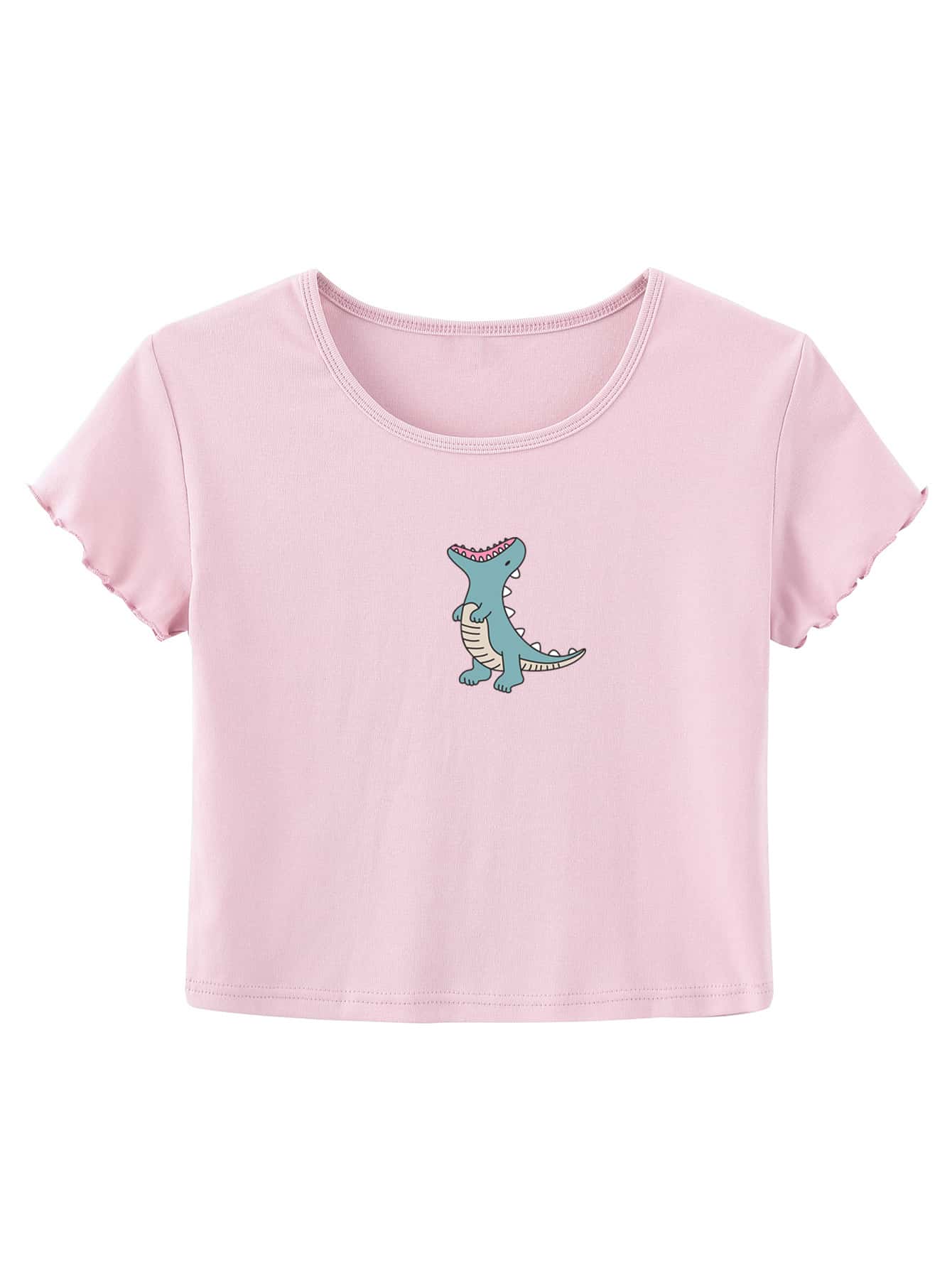 Crop T-Shirt mit Cartoon Dinosaurier Grafik