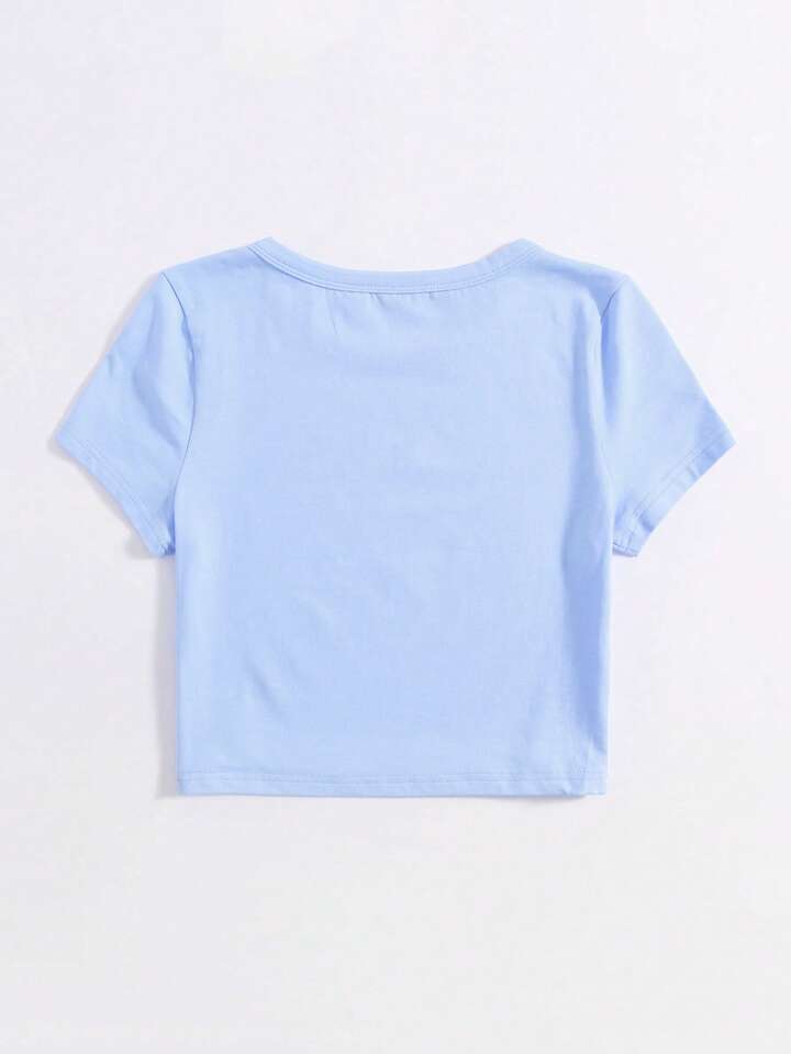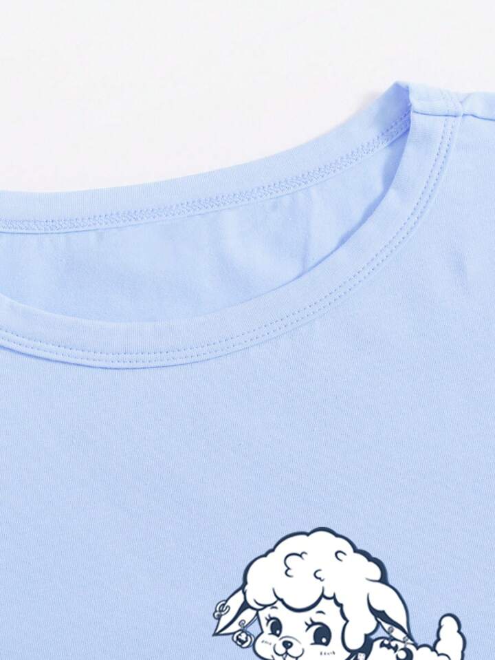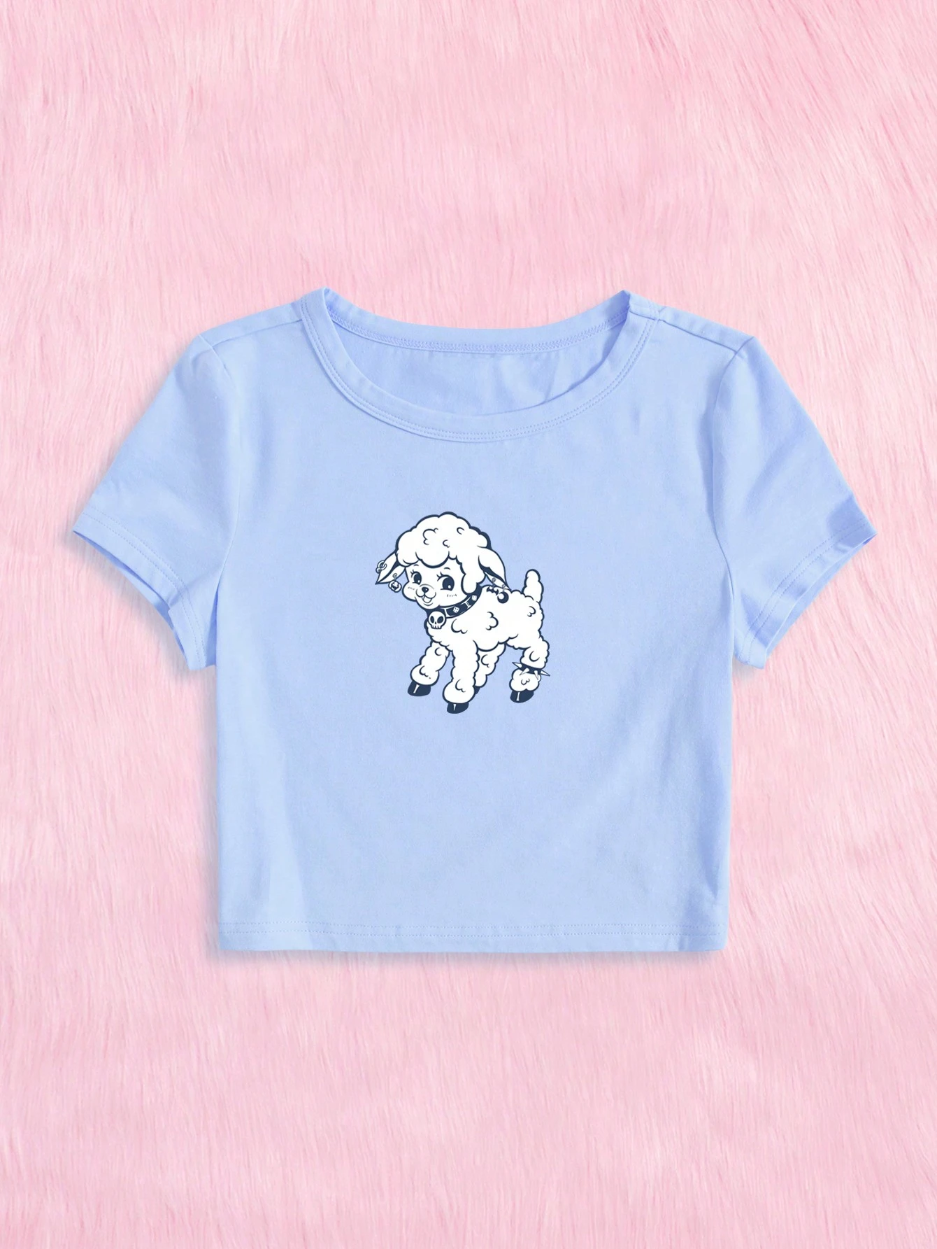 Kawaii Crop T-Shirt mit Cartoon Schaf Grafik,