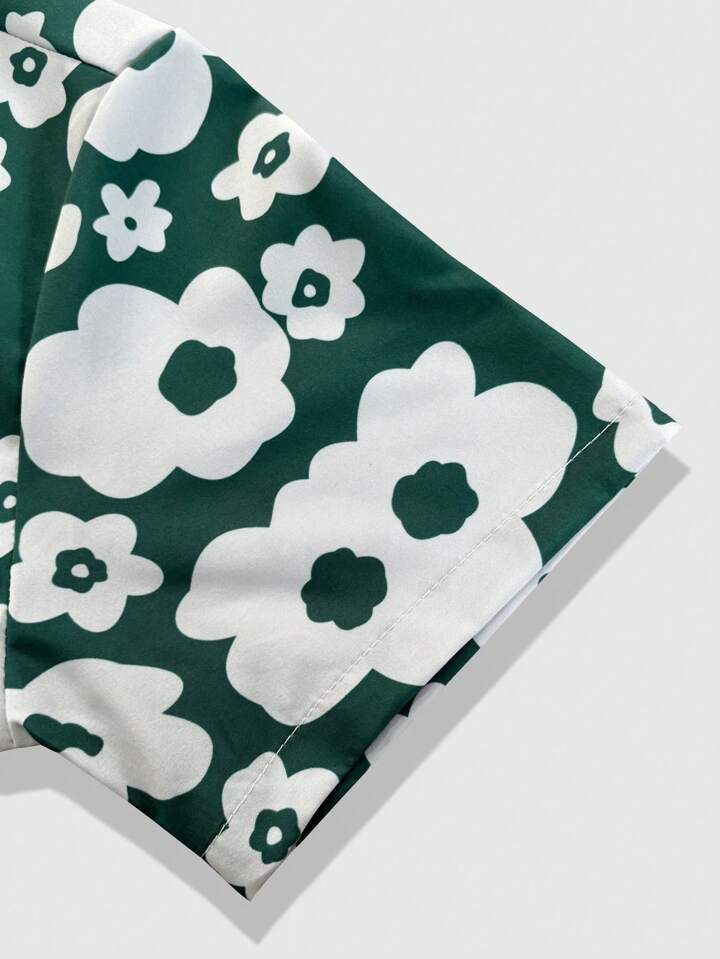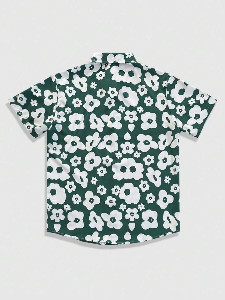 Casual Herren Modehemd mit floralen Farbkontrasten und weiter Passform, Kurzarm