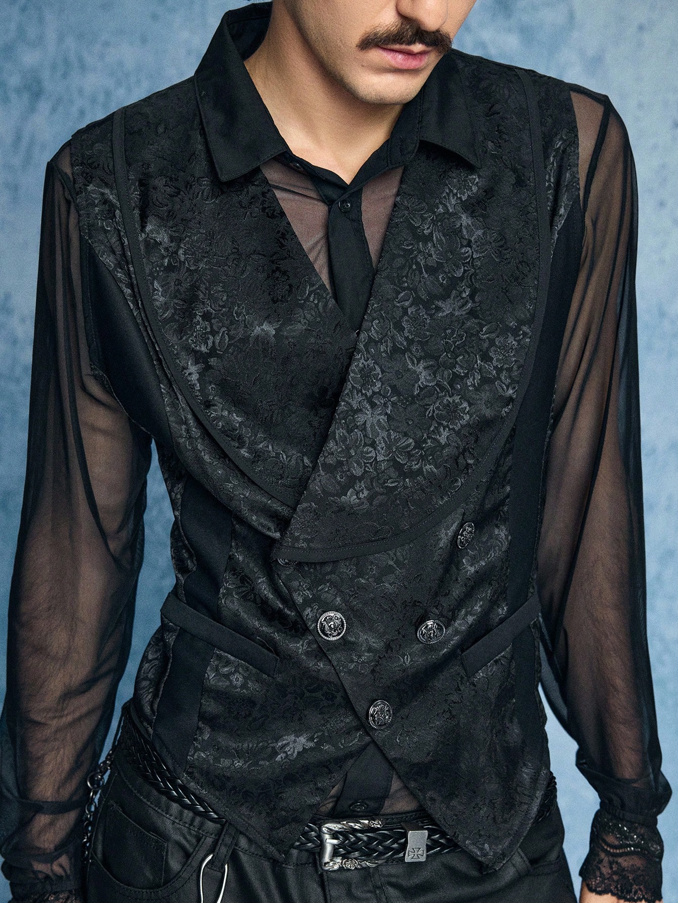 Casual Herren einfarbige doppelreihige Jacquard Gothic-Stil Weste