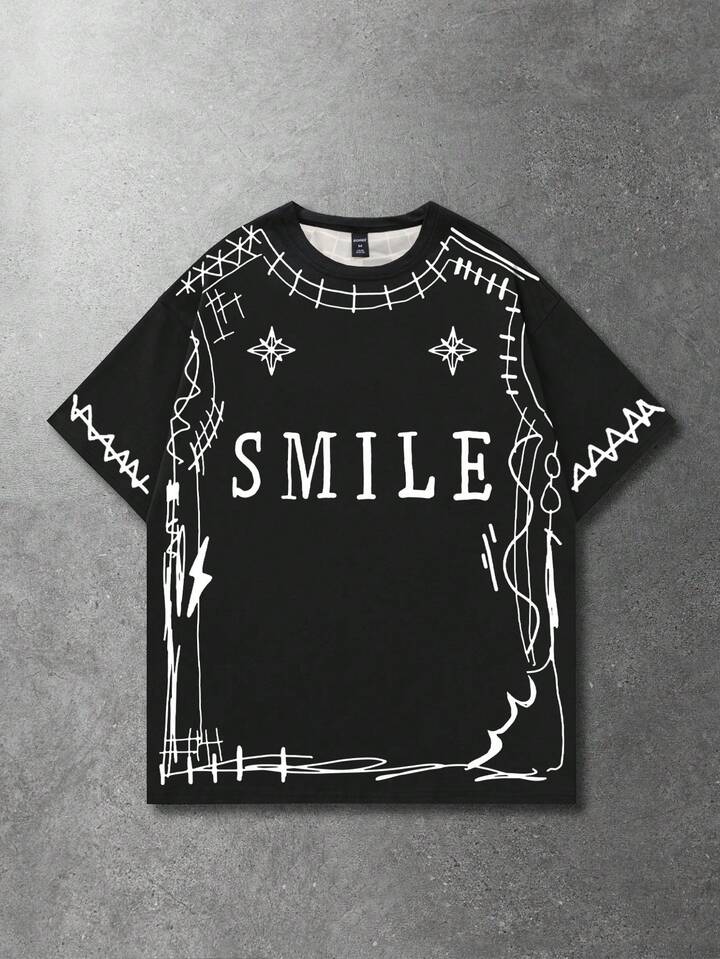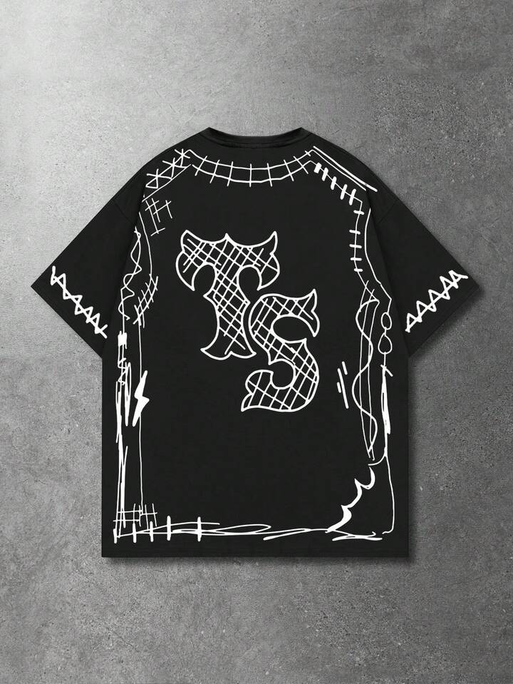 Lässiges, vielseitiges T-Shirt mit dunklem Graffiti-Stil und Kurzarm