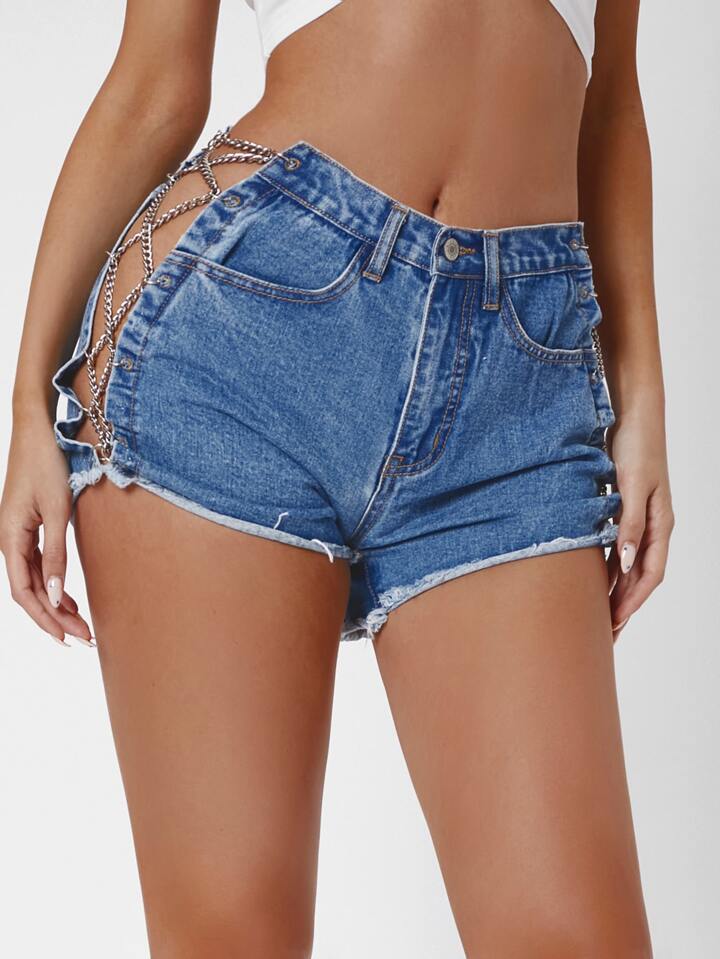 Denim Shorts mit Kette, Criss-Cross, Knoten und umgesäumtem Saum