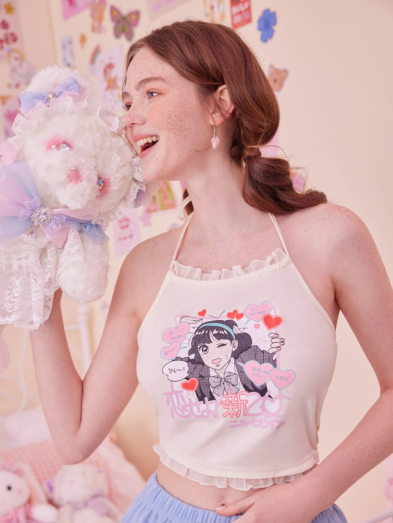 Charme gallery Trägertop mit Buchstabe Figur Grafik, Kontrast Netzstoff
