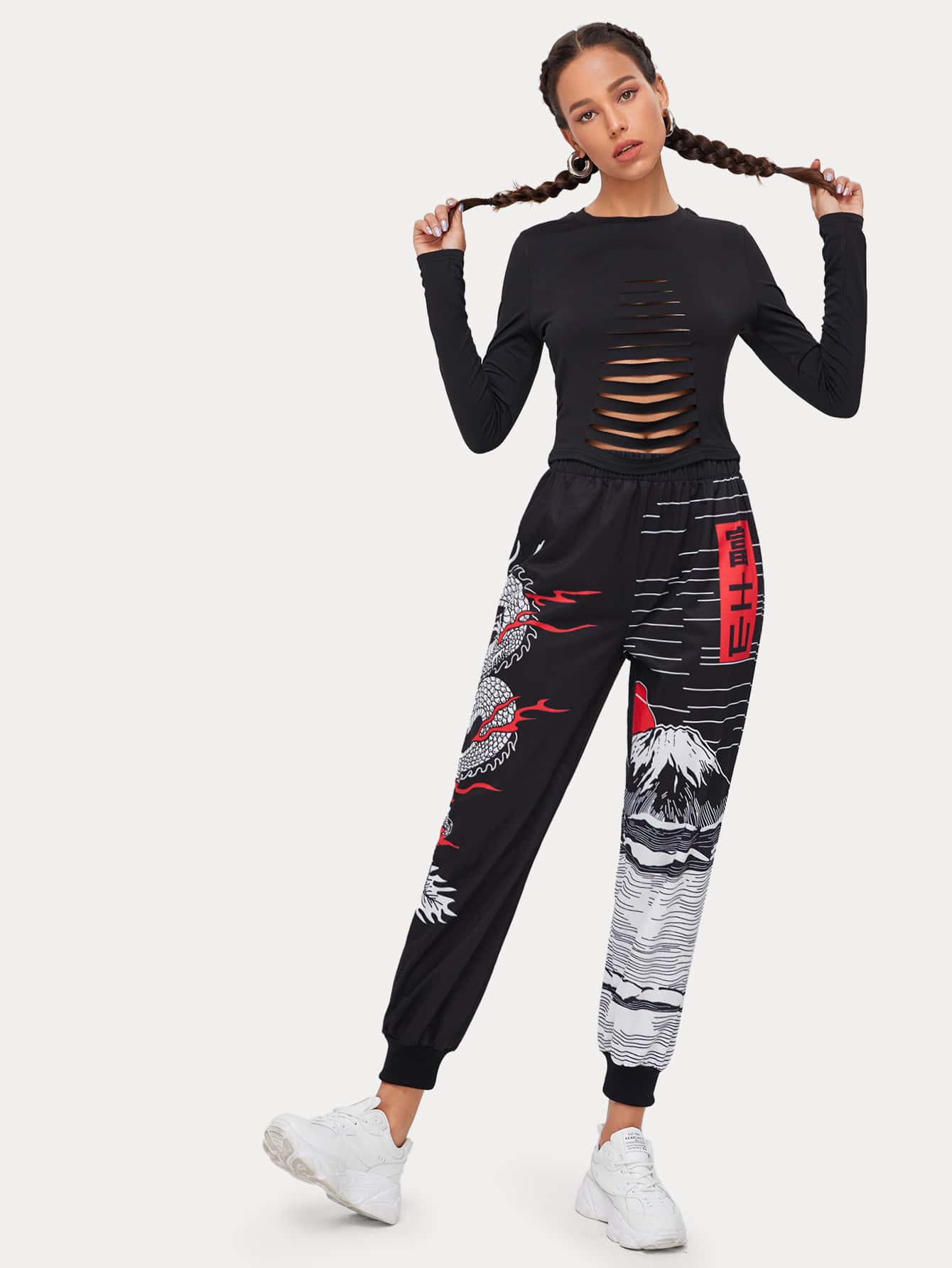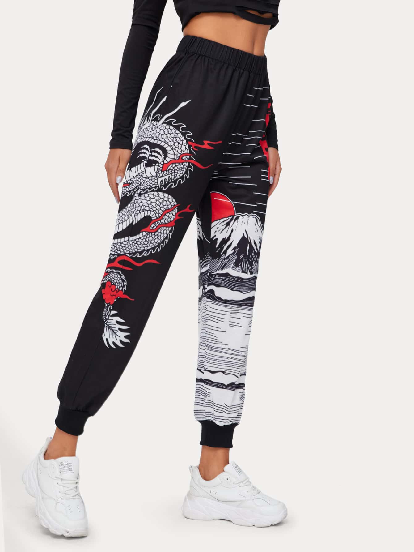 Jogginghose mit chinesischem Drachen Grafik & Berg Grafik