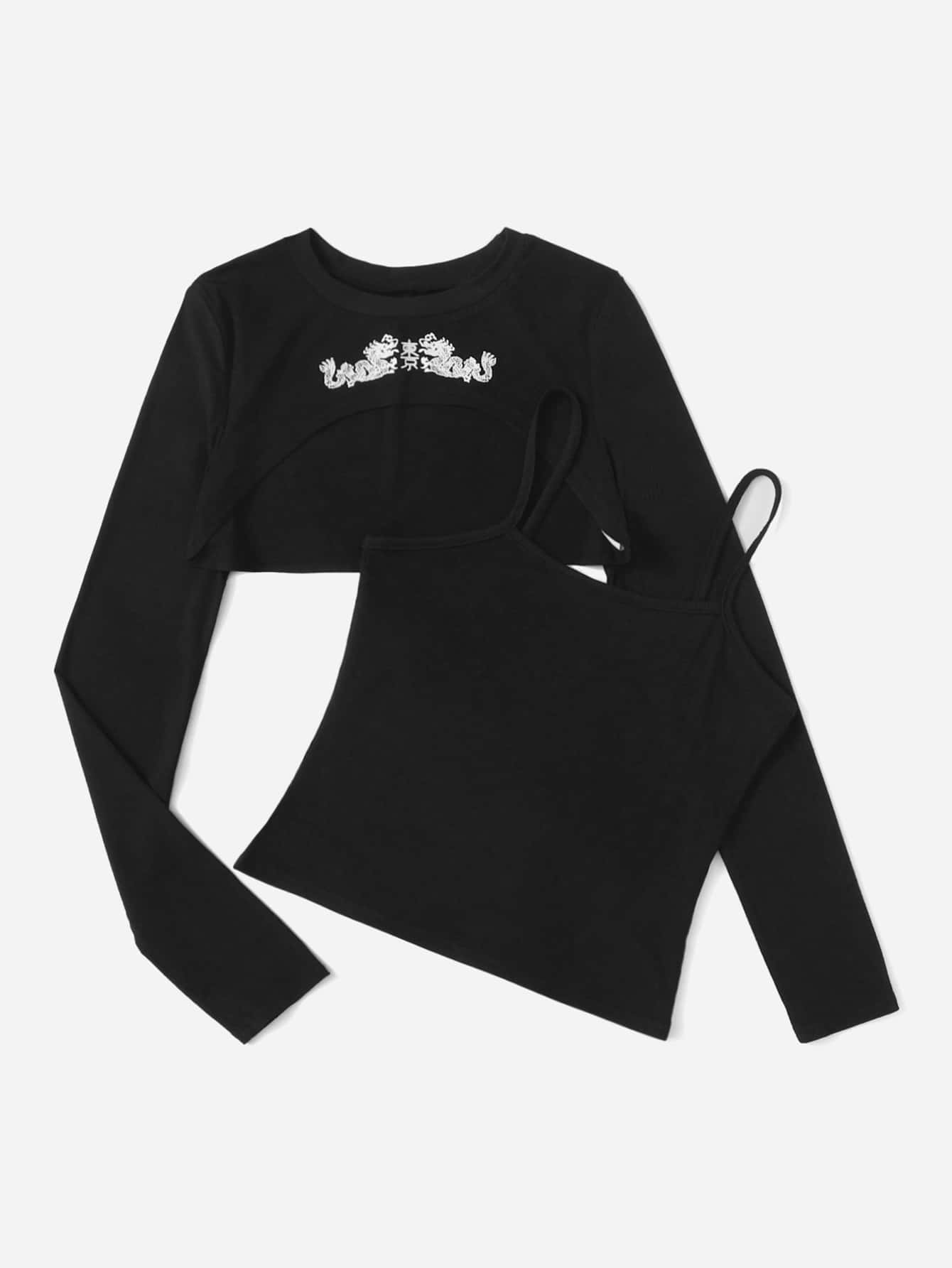Crop Top mit chinesischem Drachen Muster & Cami Top