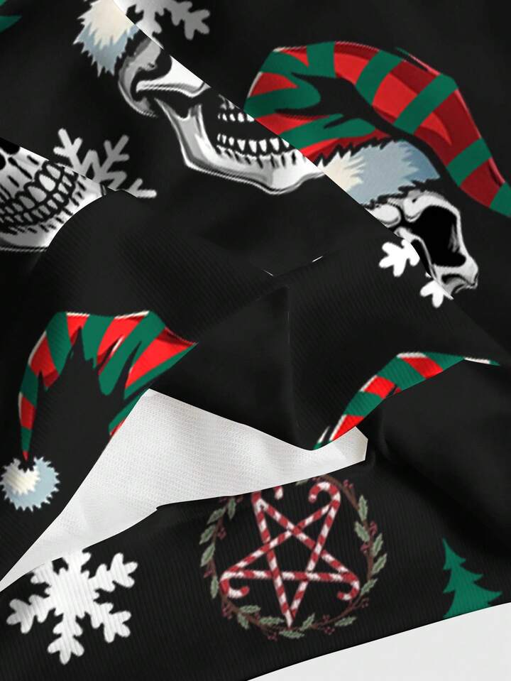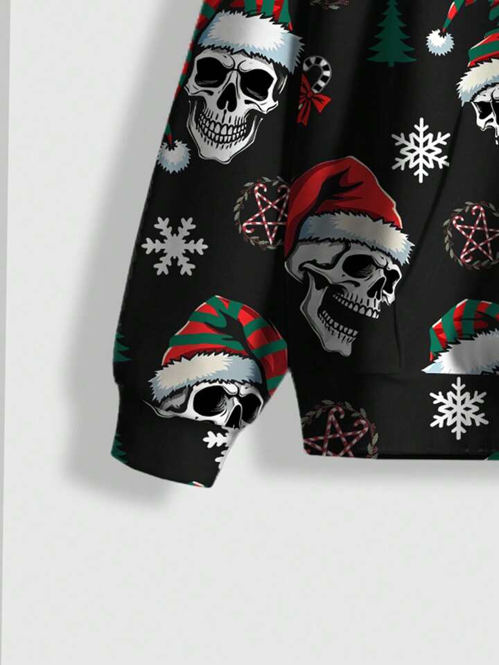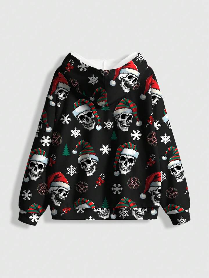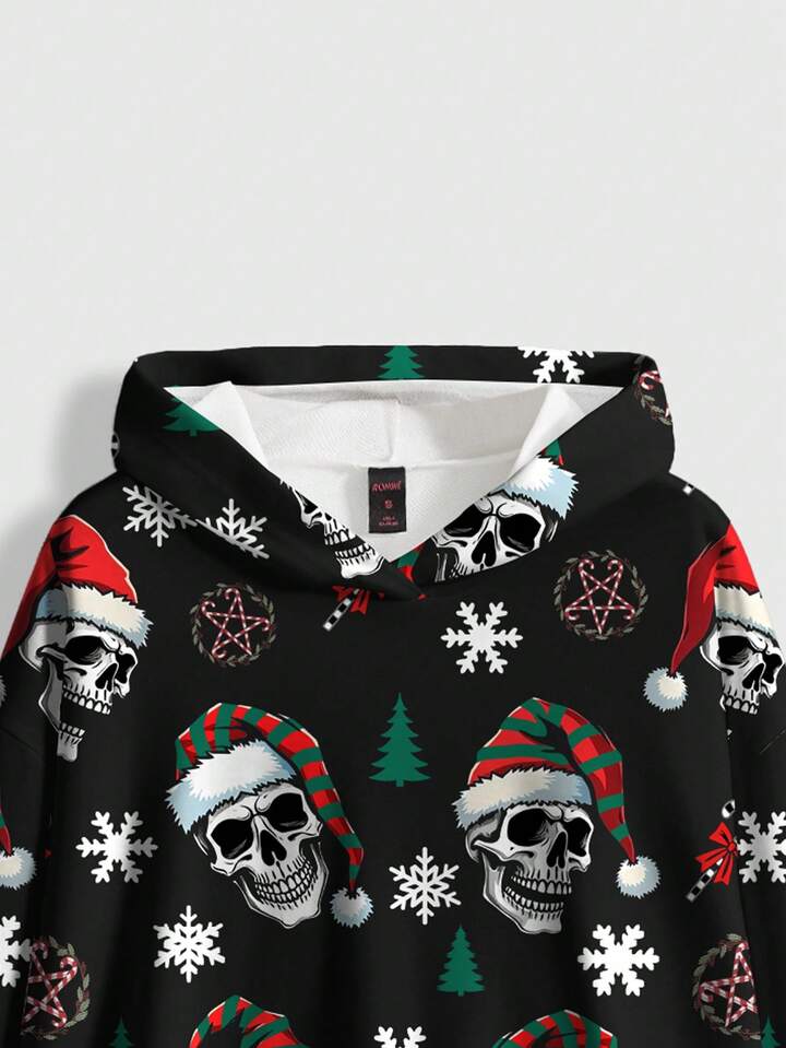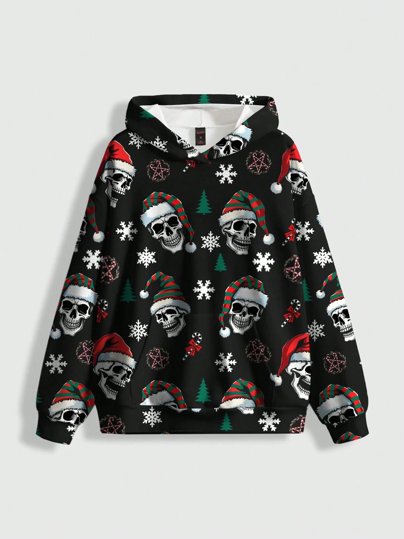 Weihnachts-Hoodie-Sweatshirt mit lockerem Sitz und dunklem, mysteriösem Skelett-Muster für Frauen