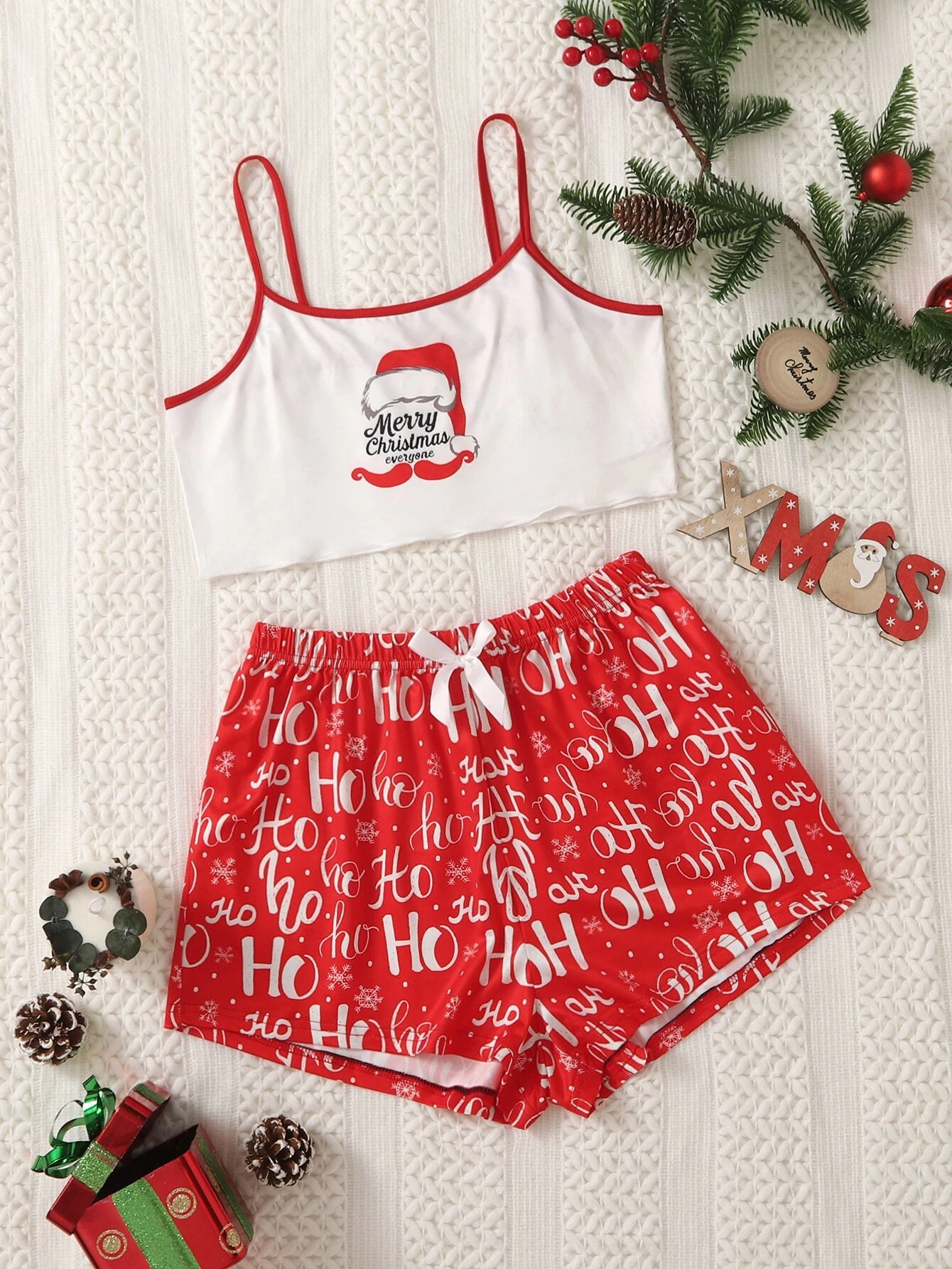 Pyjama Set mit Weihnachten Buchstaben Grafik, Schleife