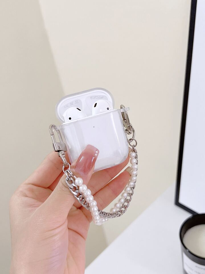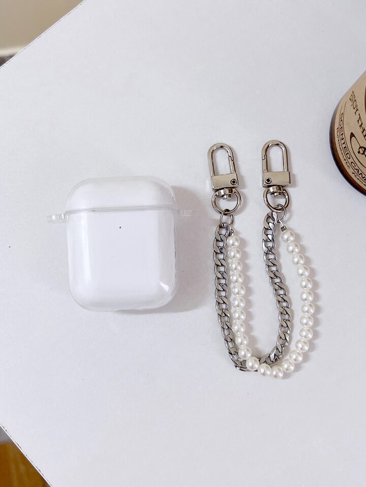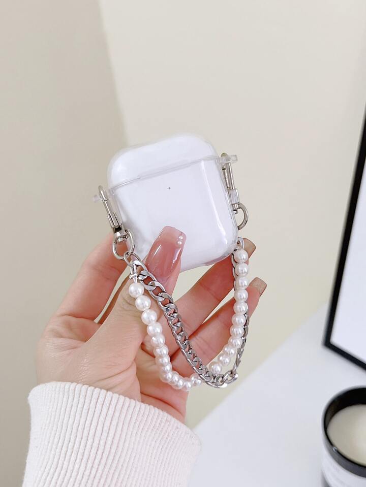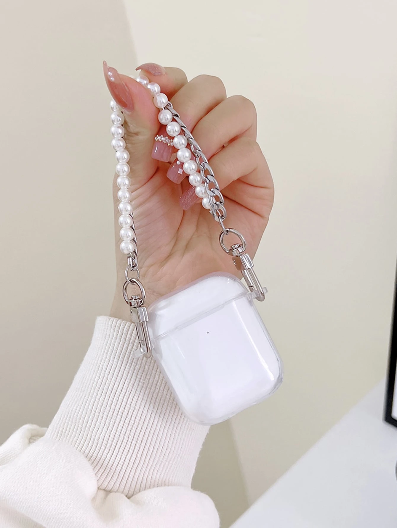 Transparente Hülle kompatibel zu Airpods & Kette & Kunstperle Tragegurt