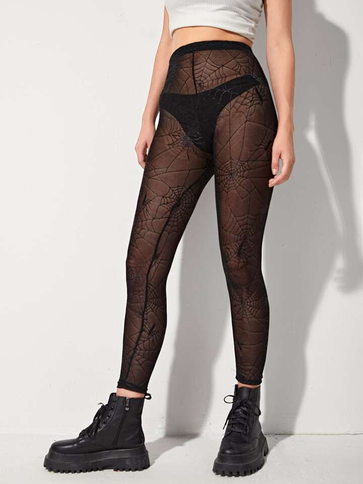 Mesh Leggings mit Spinnennetz