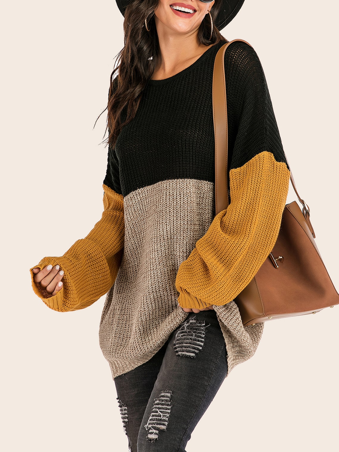 Strick Pullover mit Farbblock und sehr tief angesetzter Schulterpartie