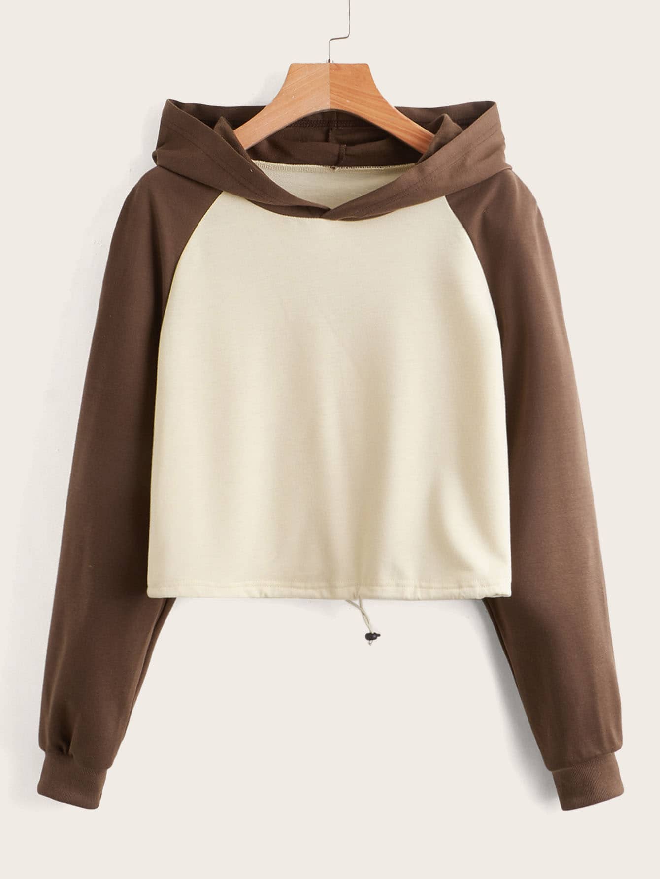 Crop Sweatshirt mit Farbblock, Tunnelzug