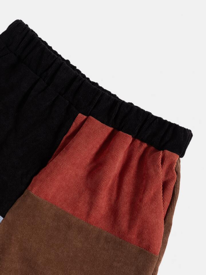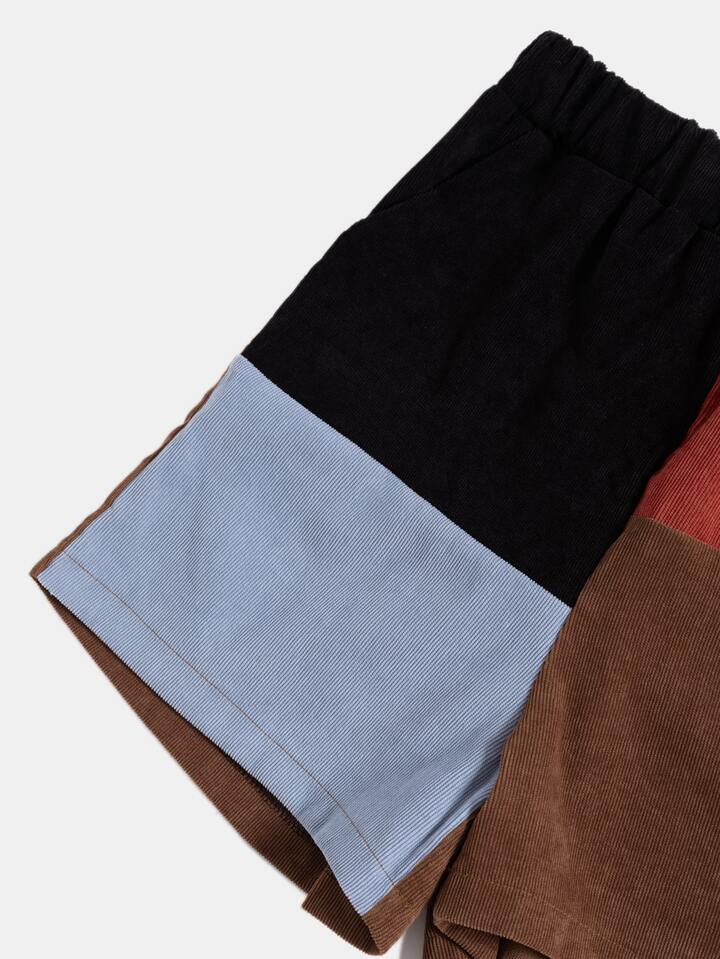 Kord Shorts mit Farbblock, versteckte Tasche