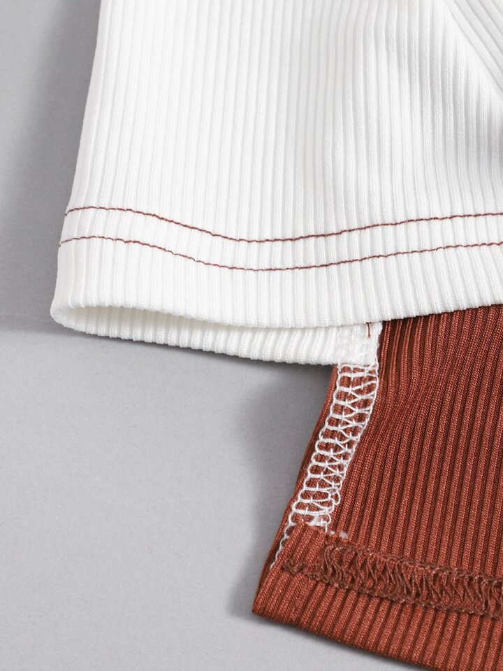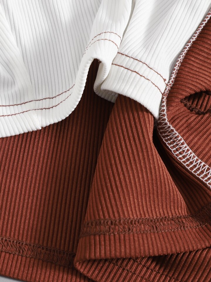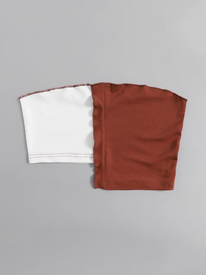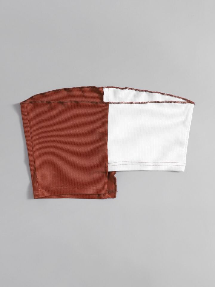 Geripptes Crop Tube Top mit Farbblock