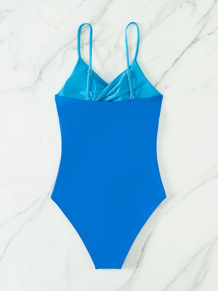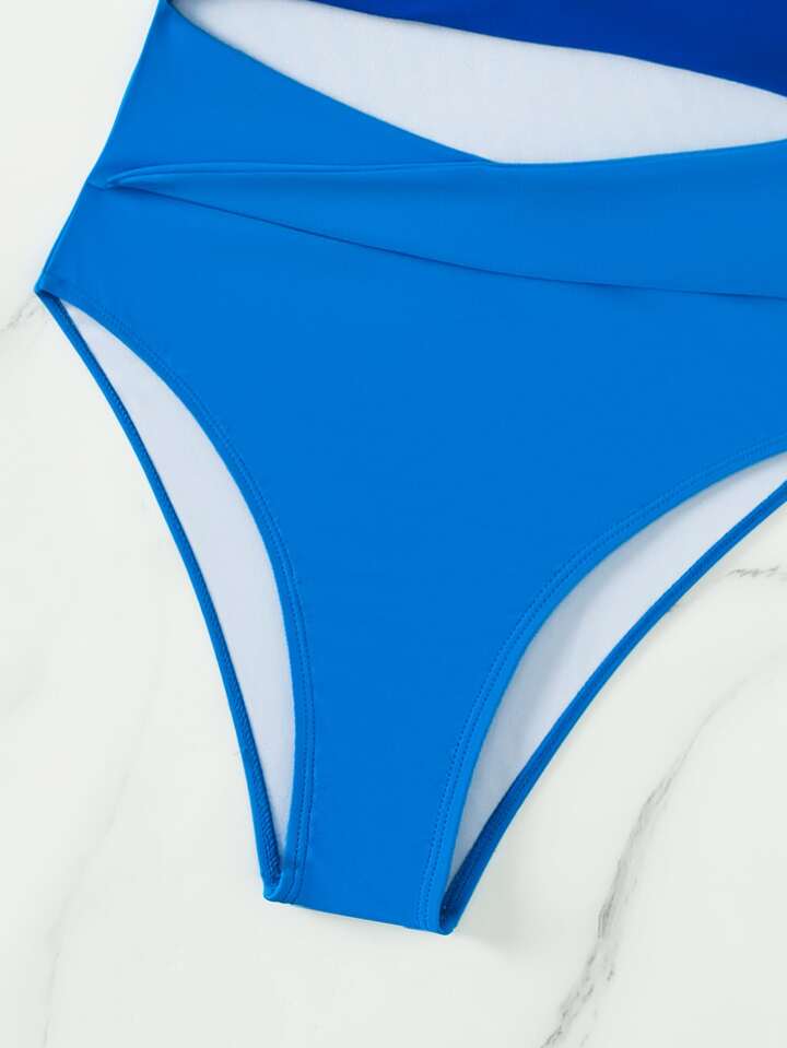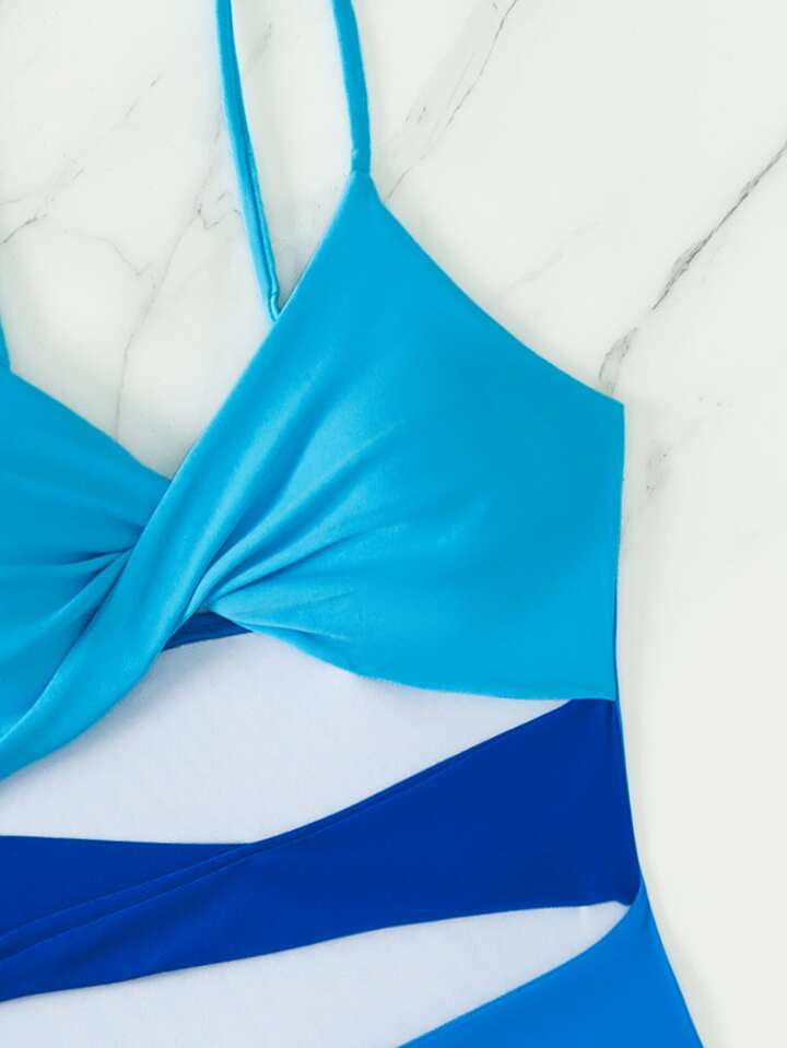 Farbblock Twist-Front Ausschnitt Badeanzug, für Sommerurlaub am Strand