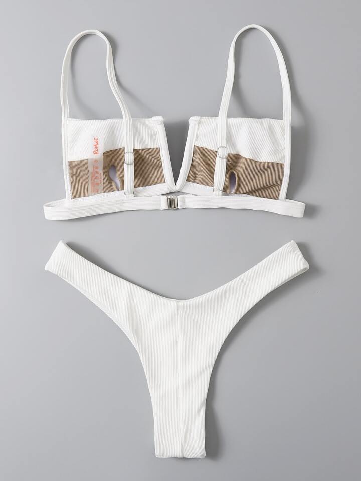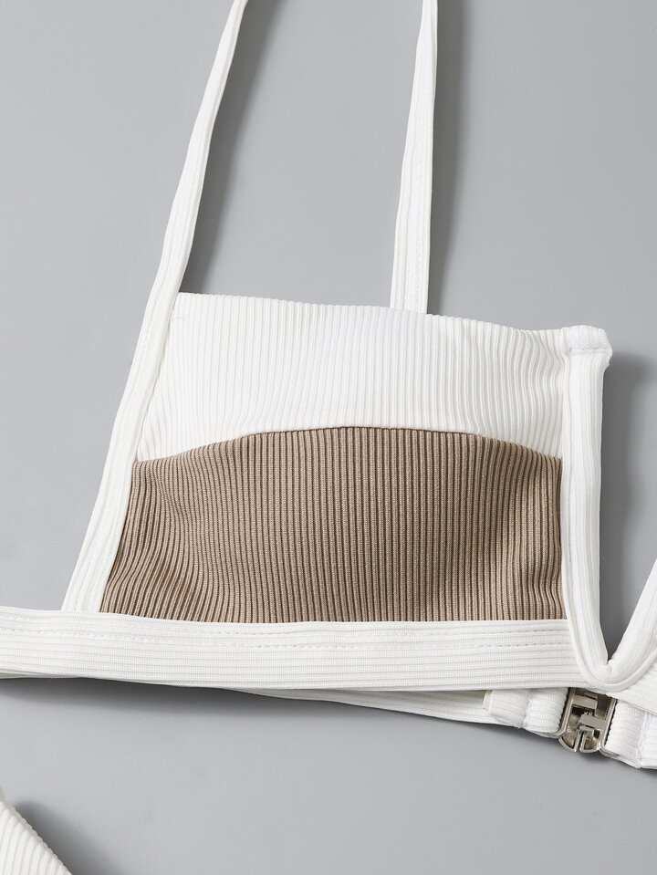 Farbblock Bikini-Set mit V-Bügel für Sommer Strandurlaub