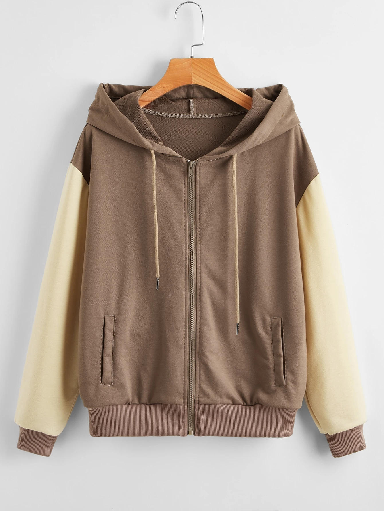 Sweatshirt mit Kapuze, Farbblock, Reißverschluss, Tunnelzug