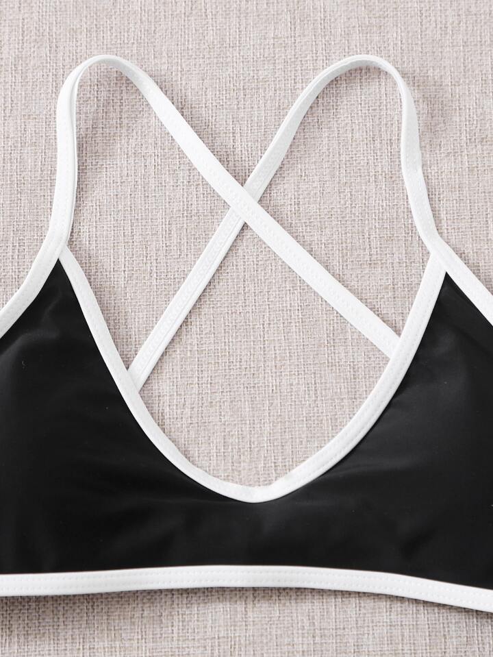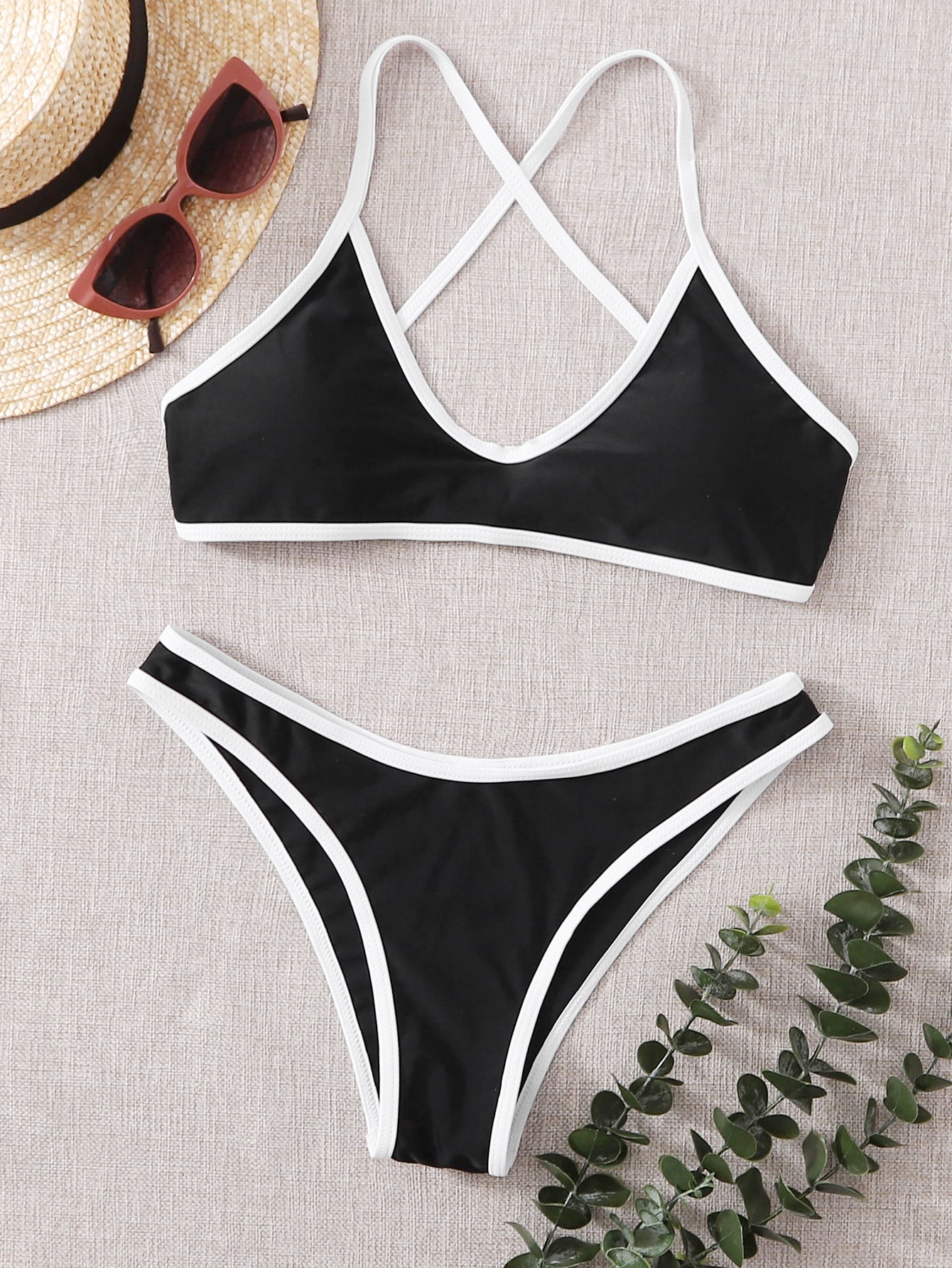 Bikini Set mit hoch geschnittenem Bein und Kontrast-Einfassung für Strand im Sommer