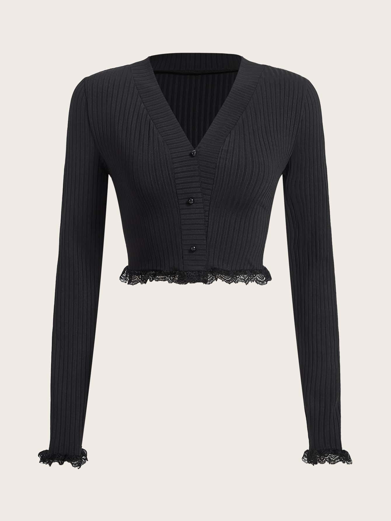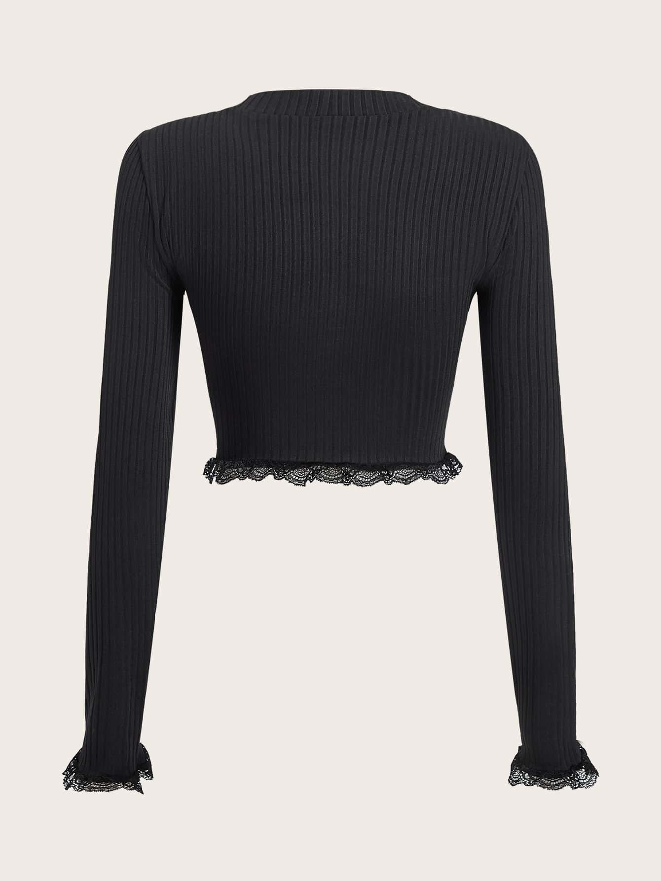 T-Shirt mit Kontrast Spitzen, Knopf vorne