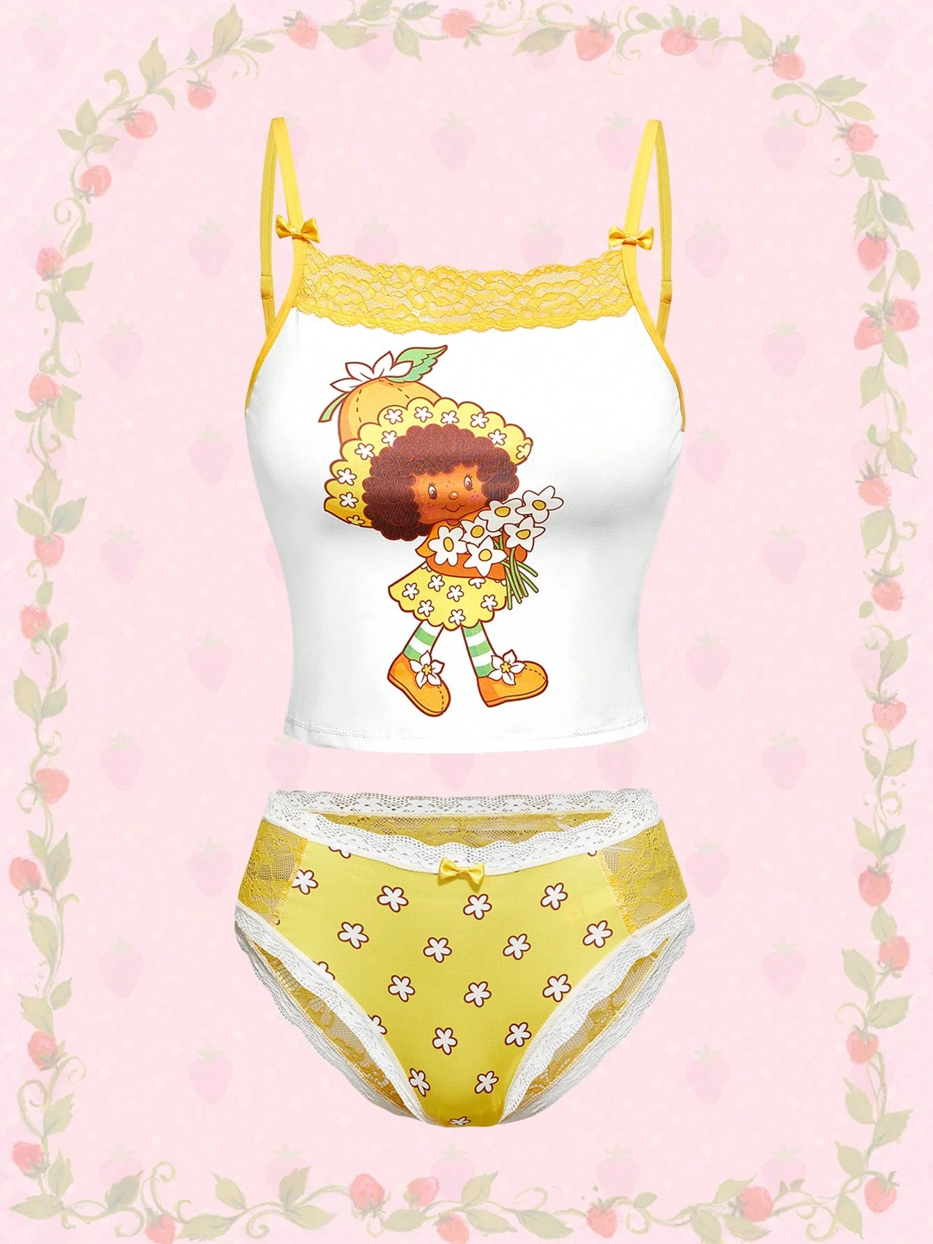 Kabelloses BH- und Höschen-Set mit kontrastierender Spitze und Cartoon-Muster für Damen