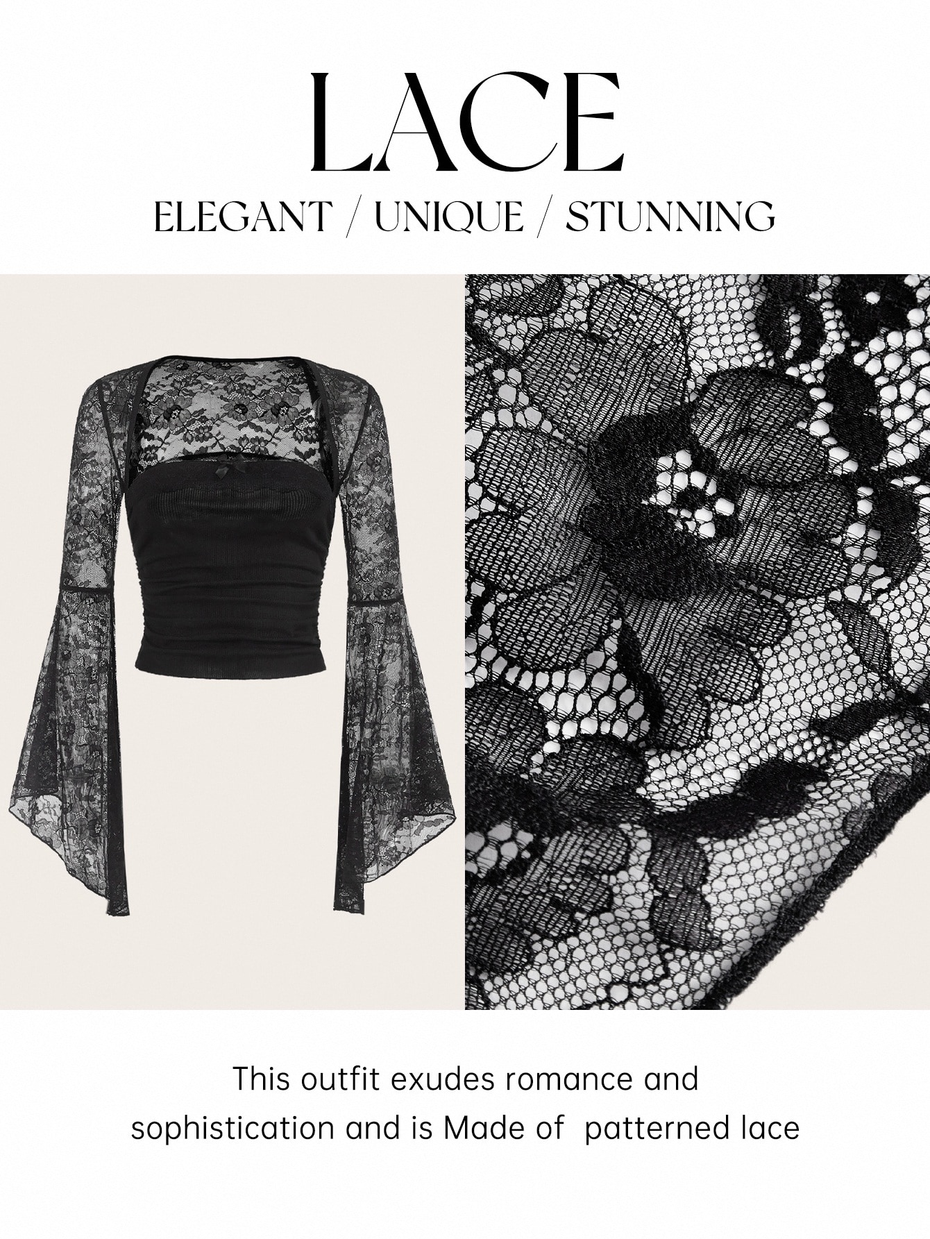 Bluse mit kontrastierender Spitze, Glockenärmeln und Raffung, Schule, Langarm Oberteile
