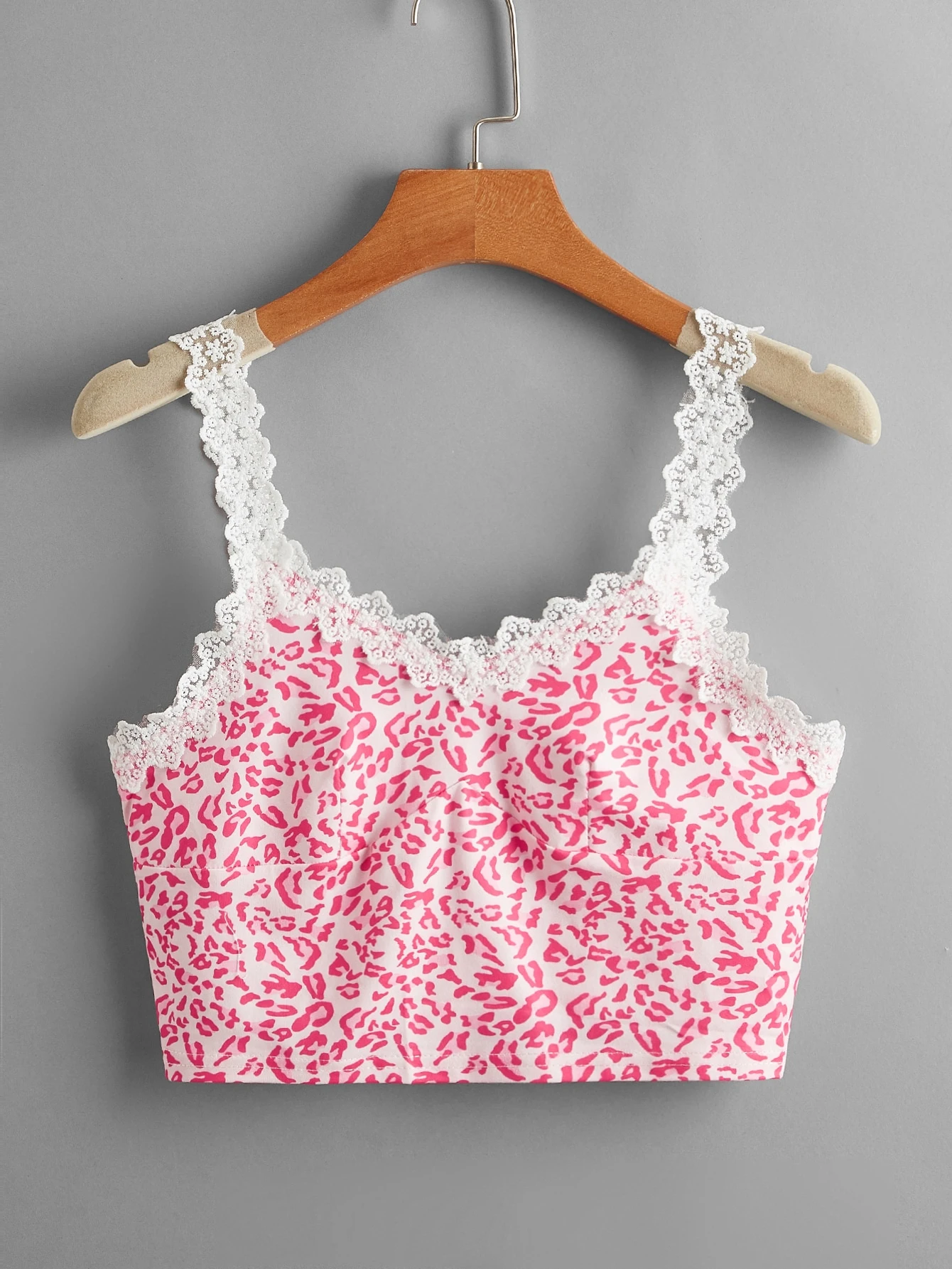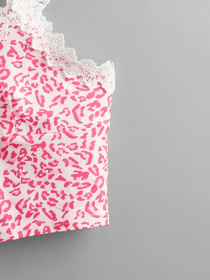 Crop Cami Top mit Kontrast Spitzen und Leopard Muster