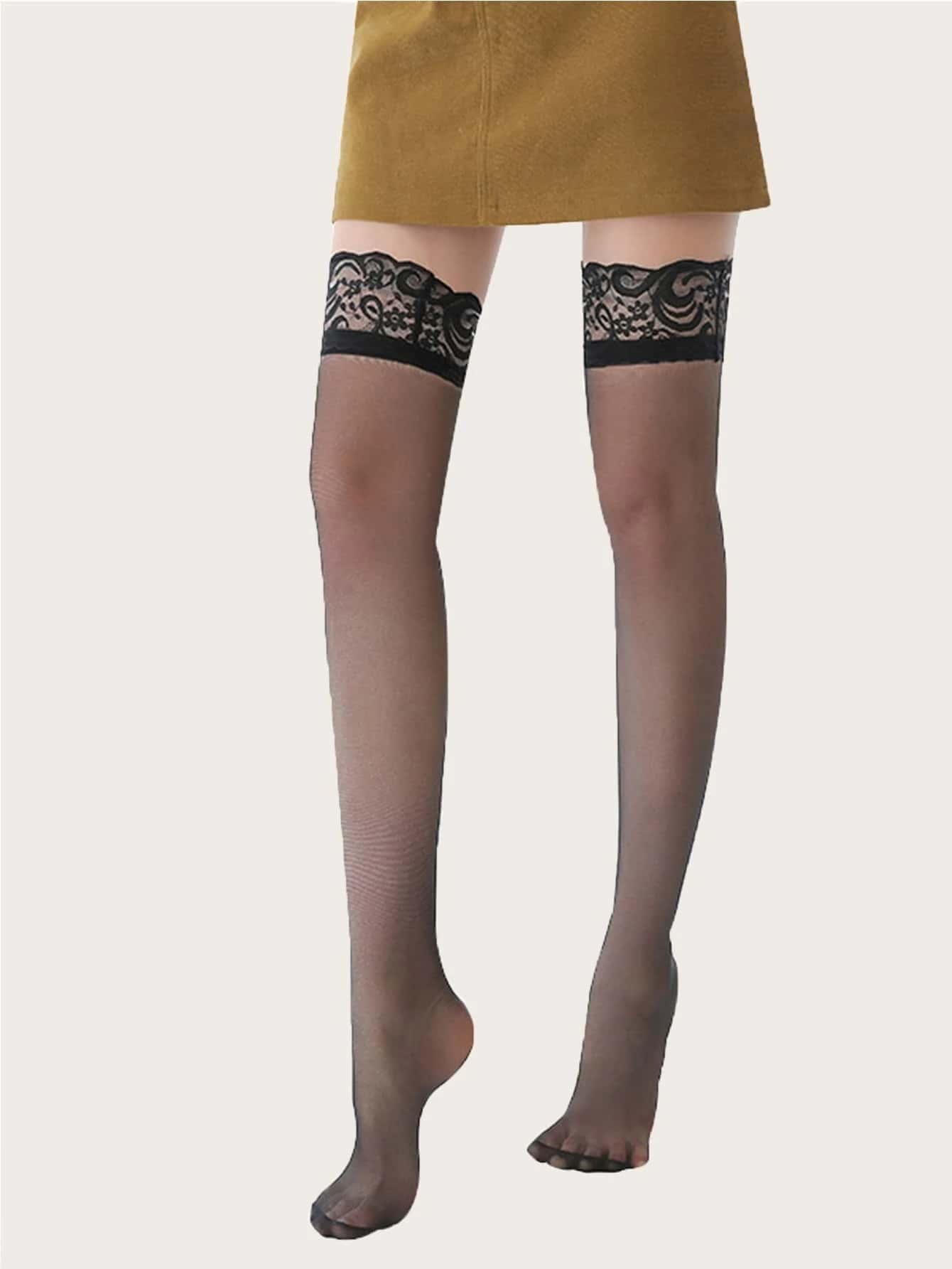 Over-the-Knee Strümpfe mit Kontrast Spitzen