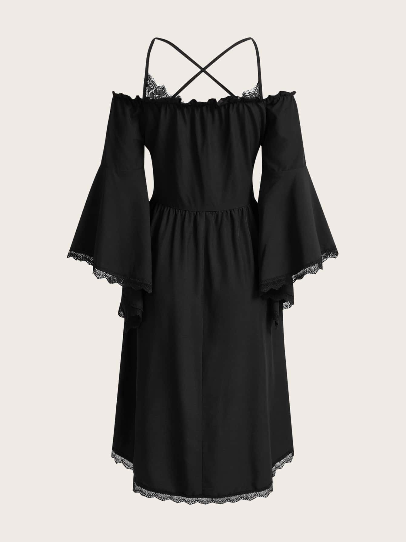 Kleid mit Kontrast Spitzen, Band vorne, Stufensaum