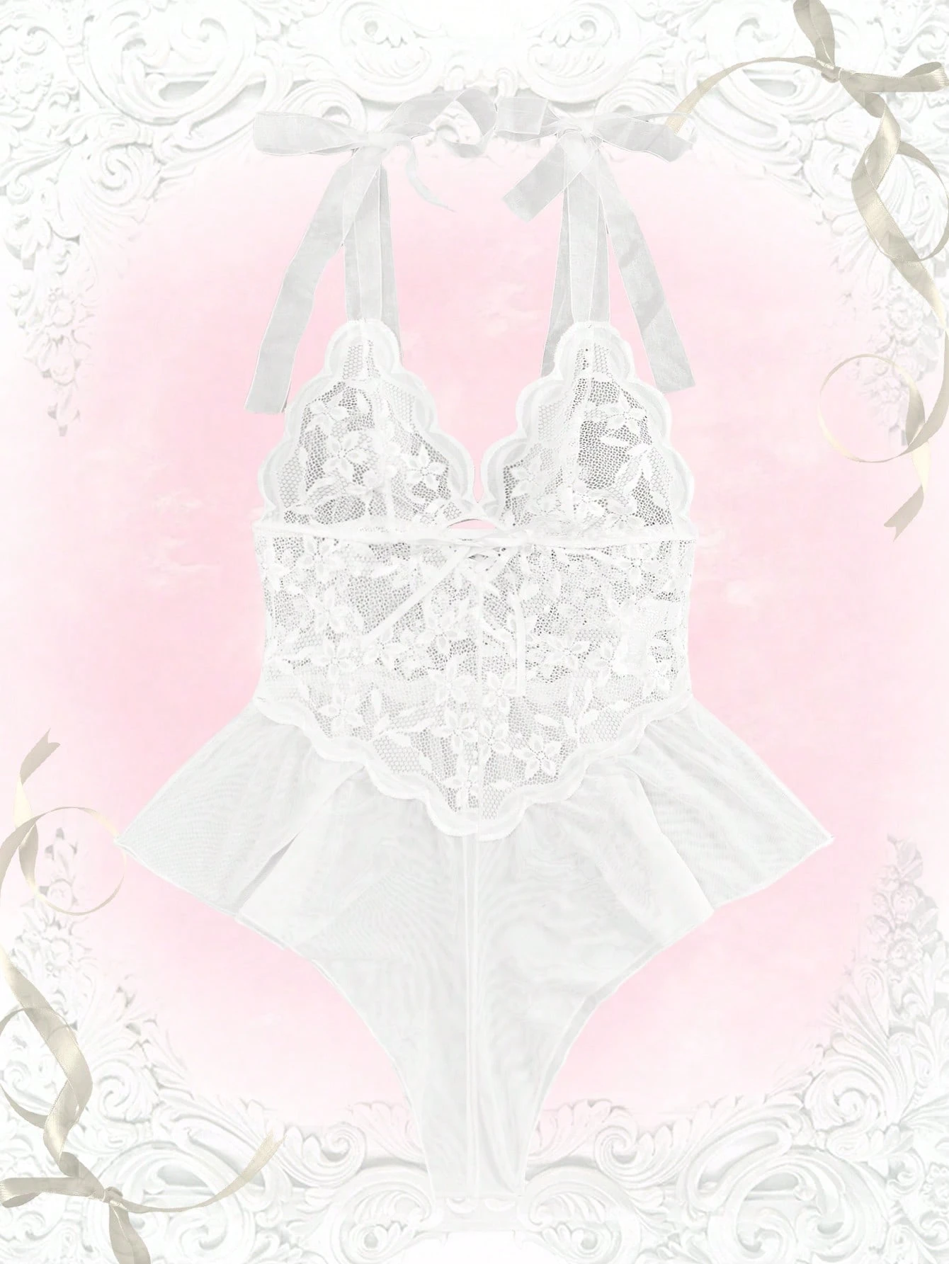 Teddy Body mit Kontrast Spitzen, Band auf Schulter,