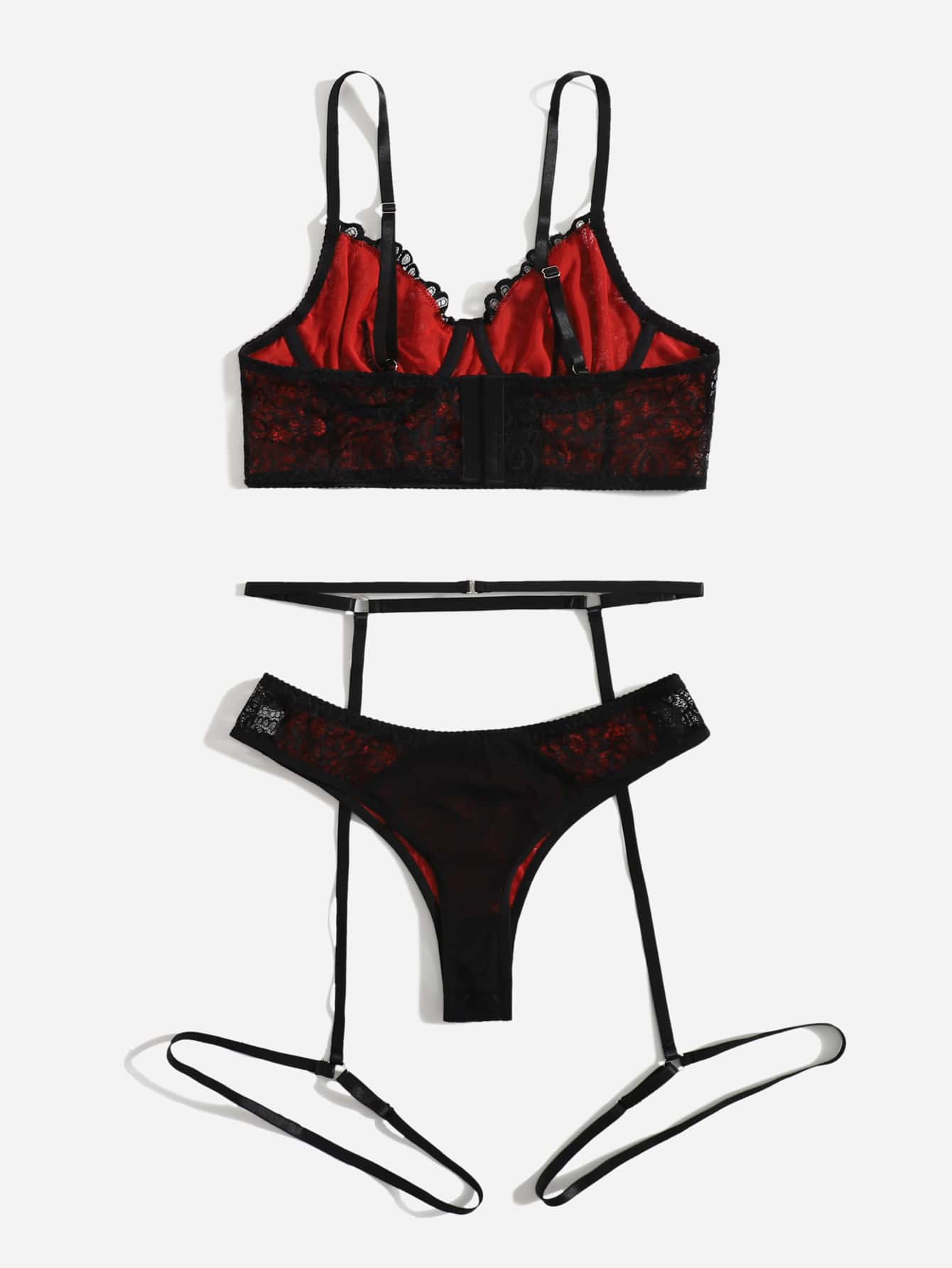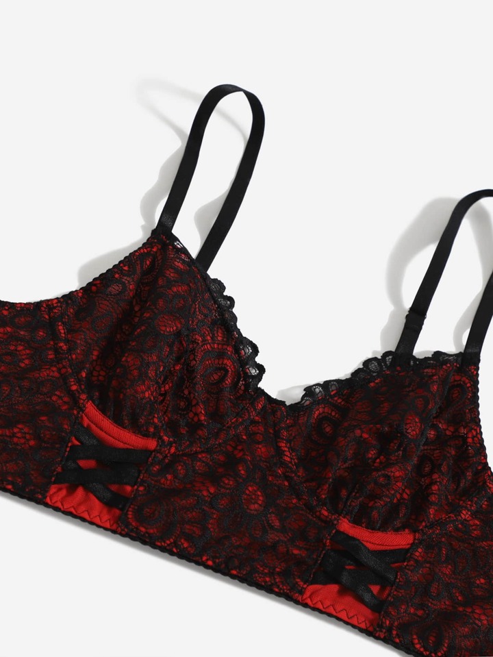 Dessous Set mit Kontrast Spitzen, Bügel, & Beinring