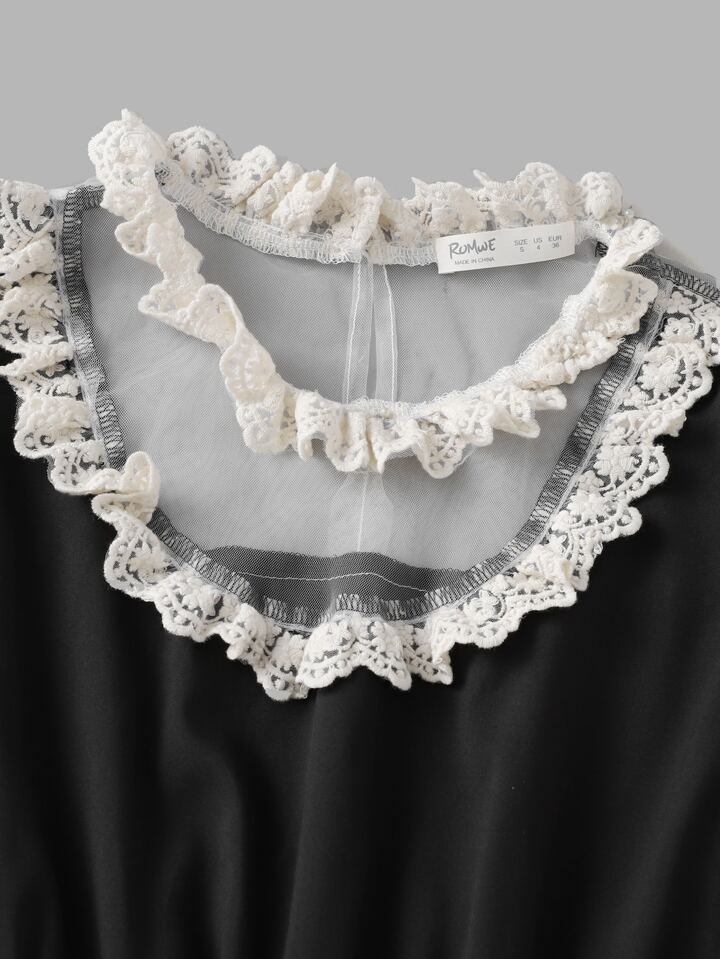 Kleid mit Kontrast Netzstoff, Volant, Kragen