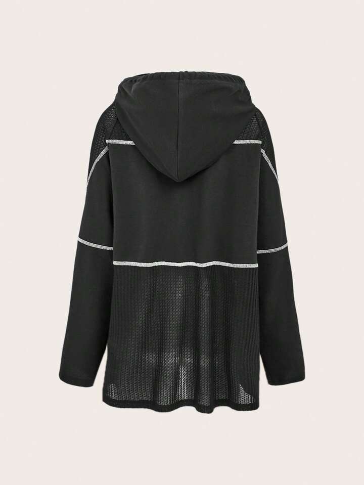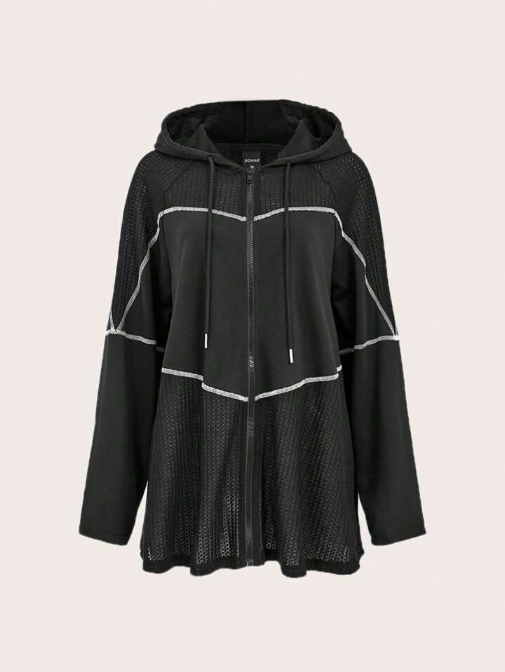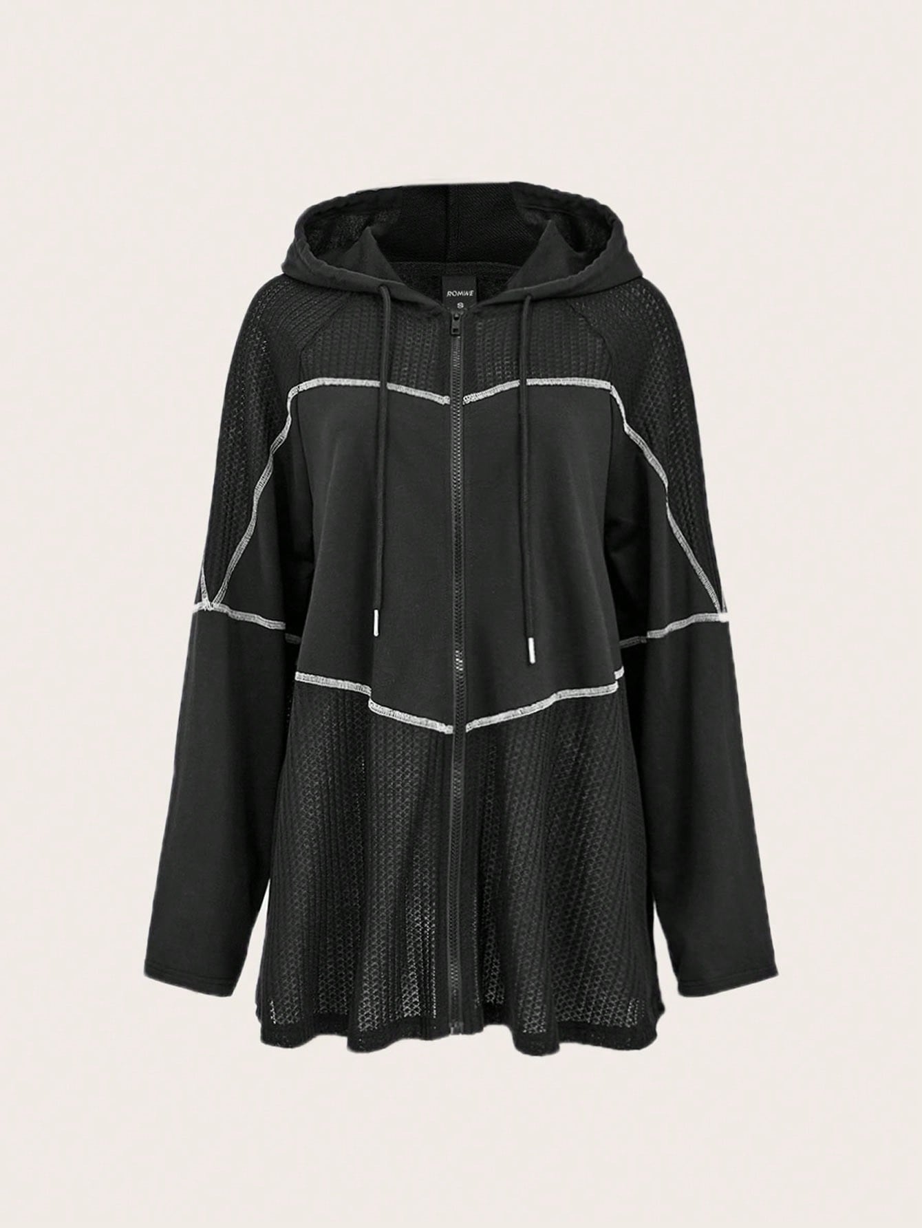 Mantel mit Kapuze, Kontrast Paspel, Reißverschluss, Tunnelzug,