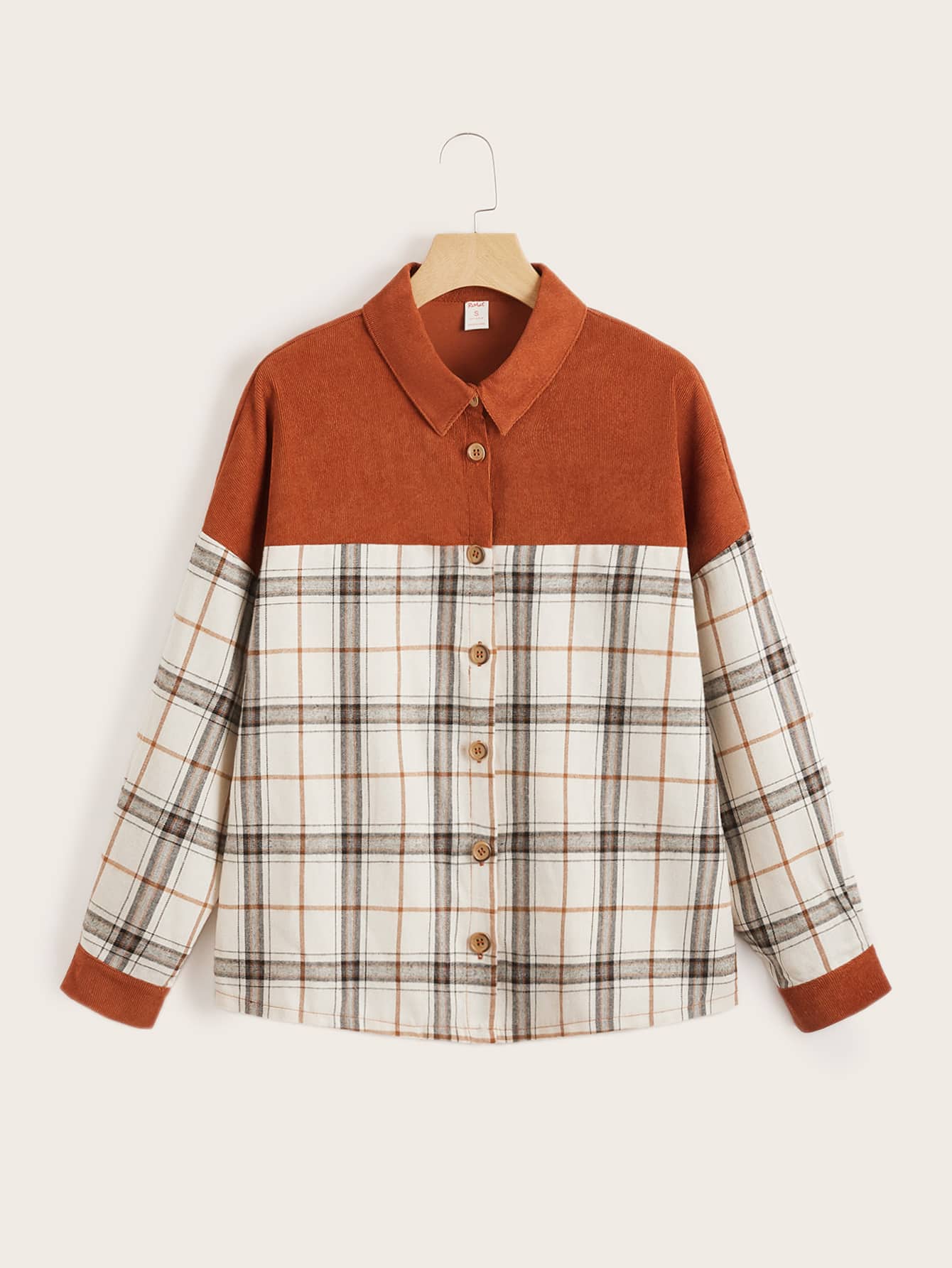 Jacke mit Kontrast Plaid Muster, Knopf vorne