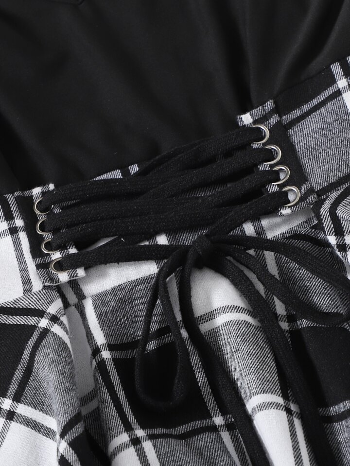 Cami Kleid mit Kontrast Plaid Muster, Band