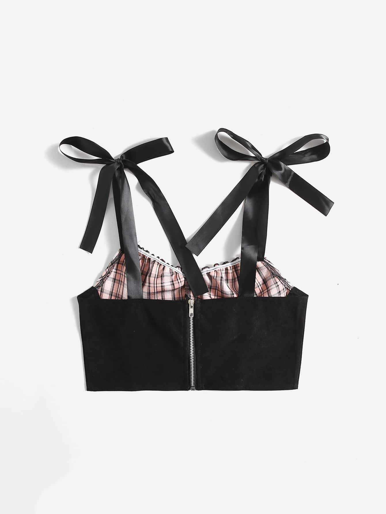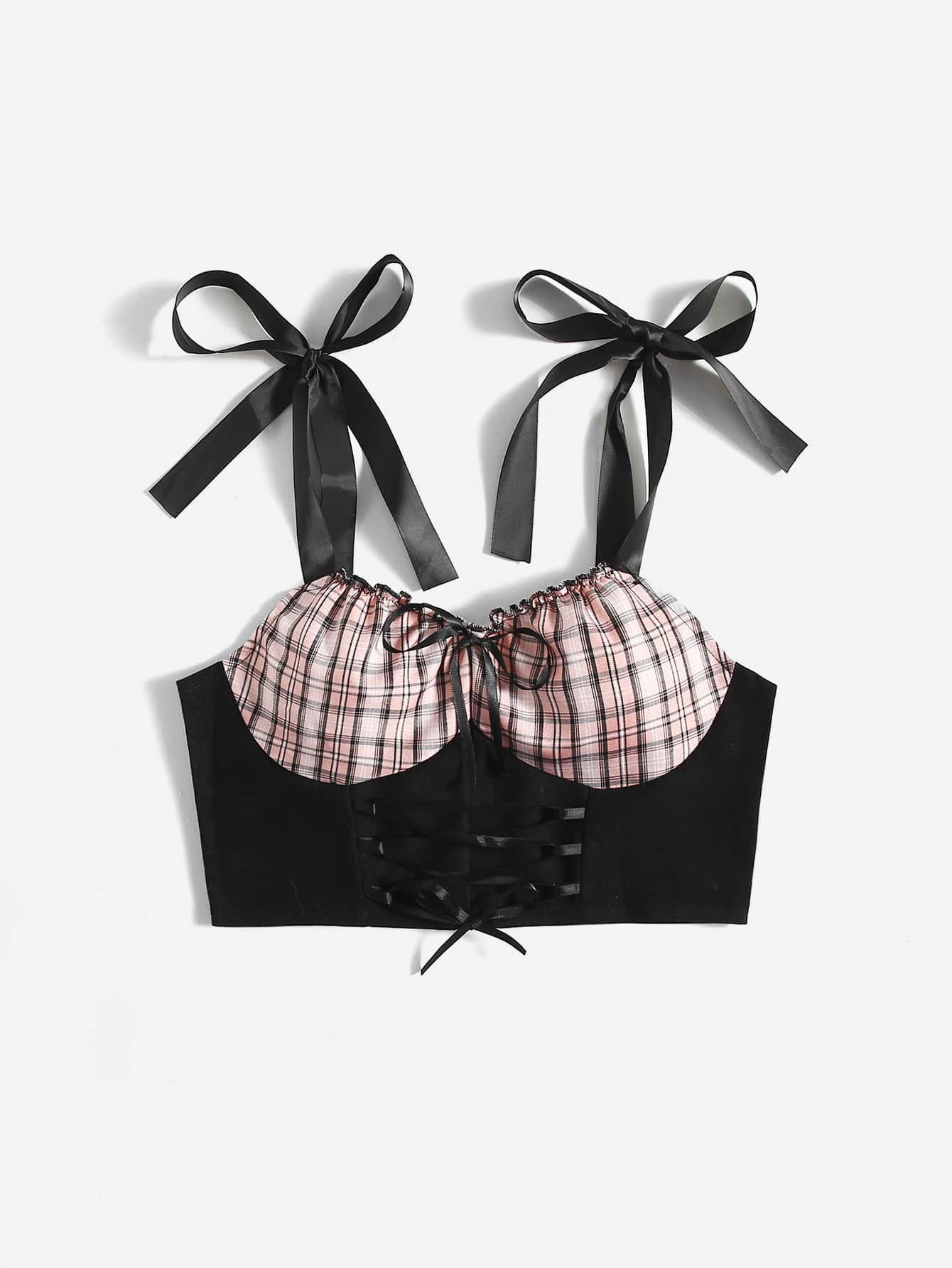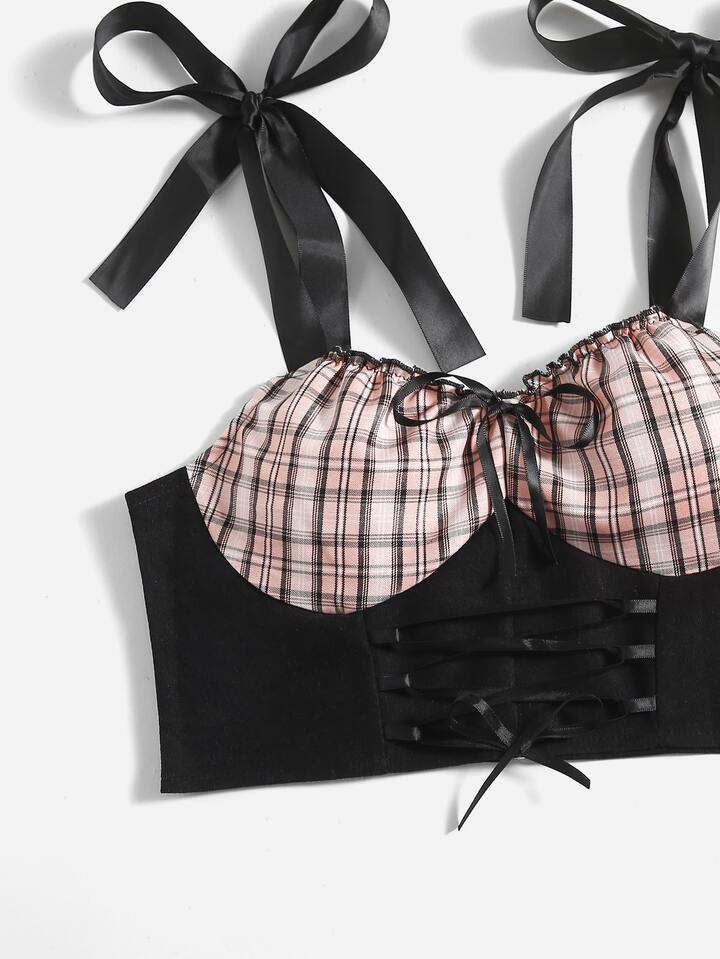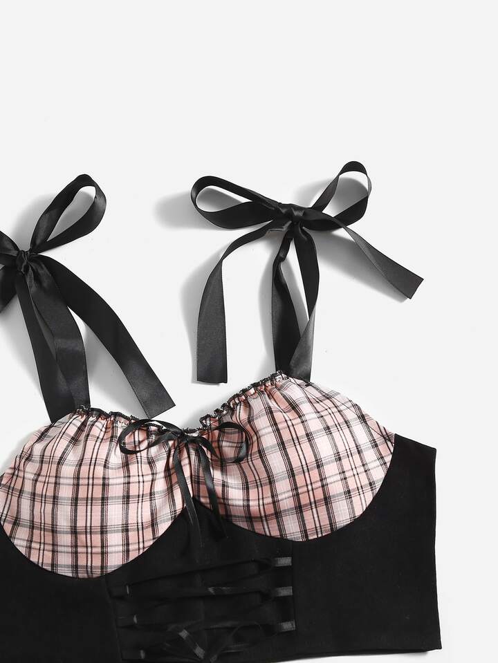 Crop Cami mit Kontrast Plaid Muster, Band auf Schulter, Band