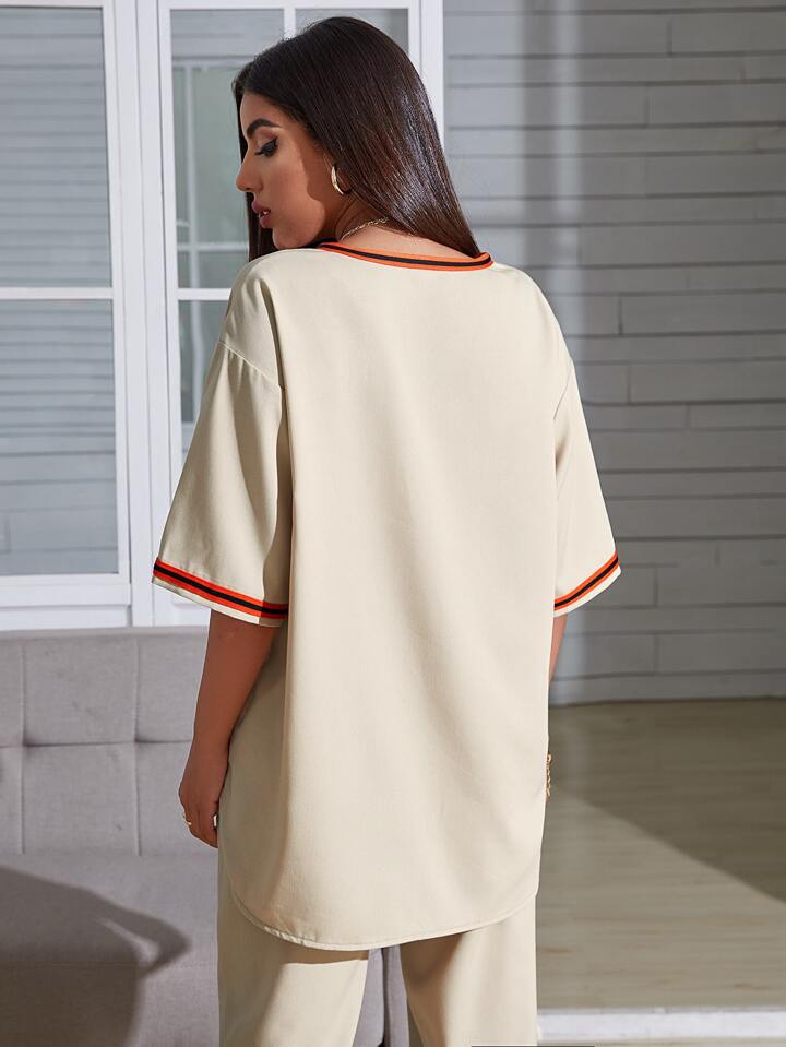 Top mit Kontrast Streifen und Buchstaben Grafik
