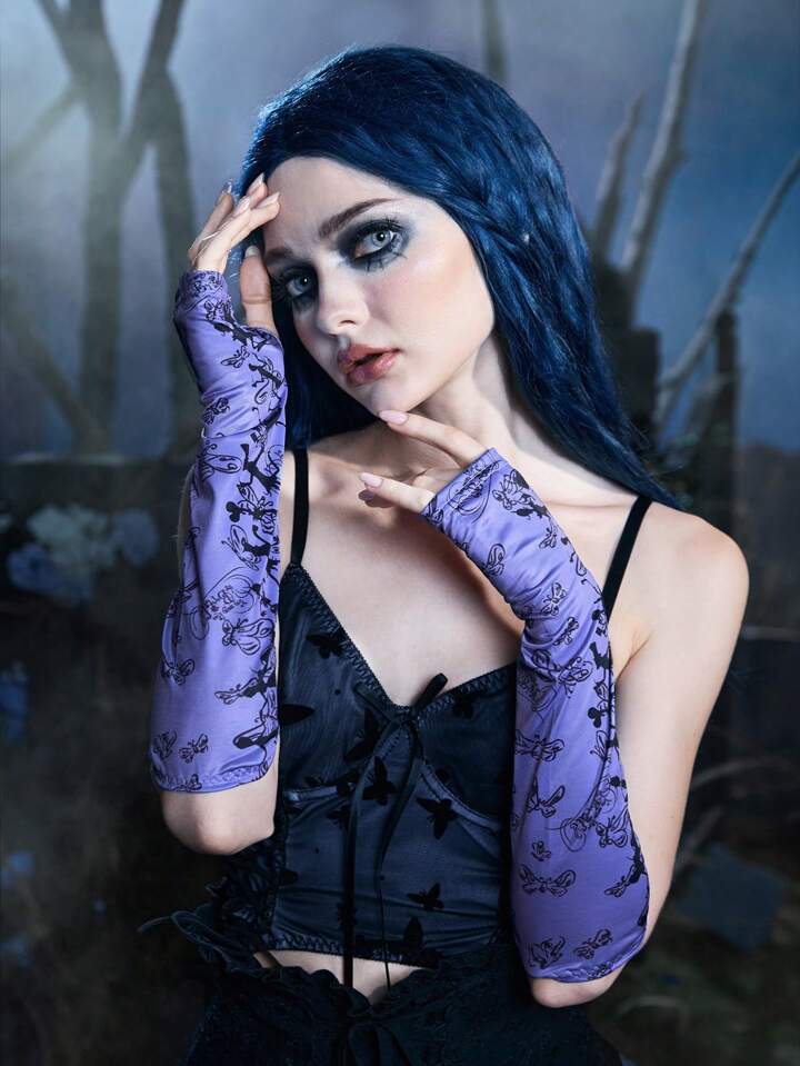 Corpse Bride | ROMWE Frauen 1 Paar Schutzärmel mit Cartoon Grafik, Lang für Täglich