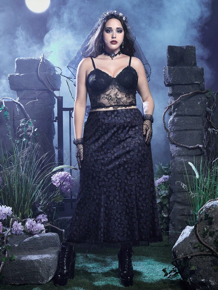 Corpse Bride | ROMWE Rock mit Blume Jacquard