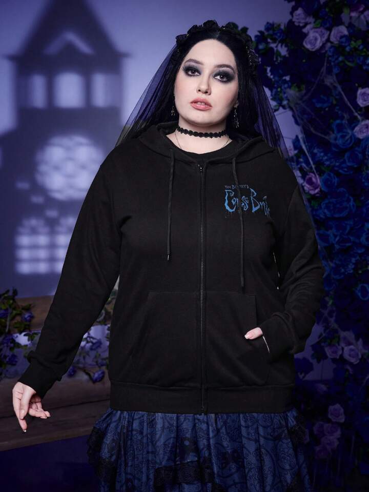 Corpse Bride | ROMWE Plus Buchstaben & Ziffern Grafischer Pullover Mit Übergroßen Schultern