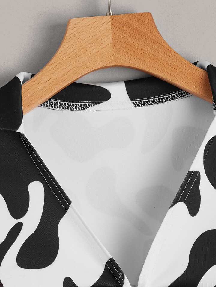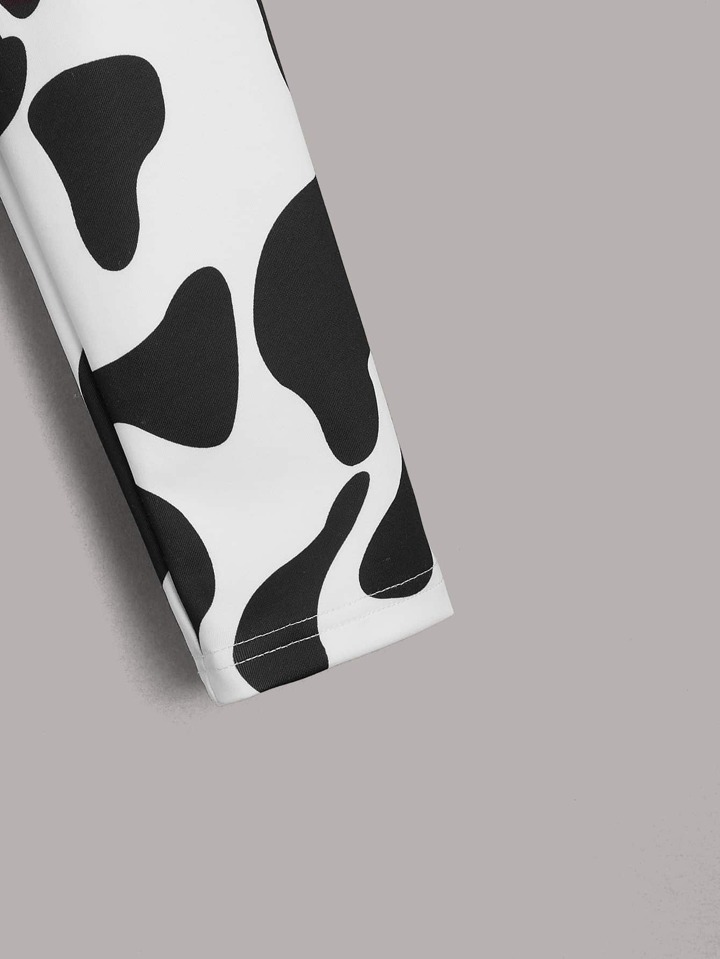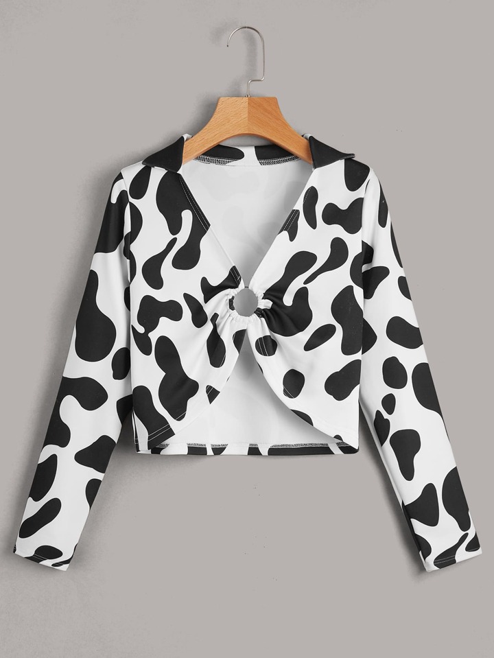 Crop Top mit Kuh Muster, Ring Dekor