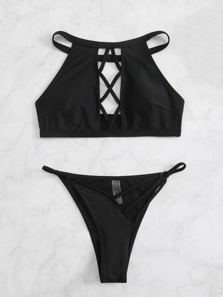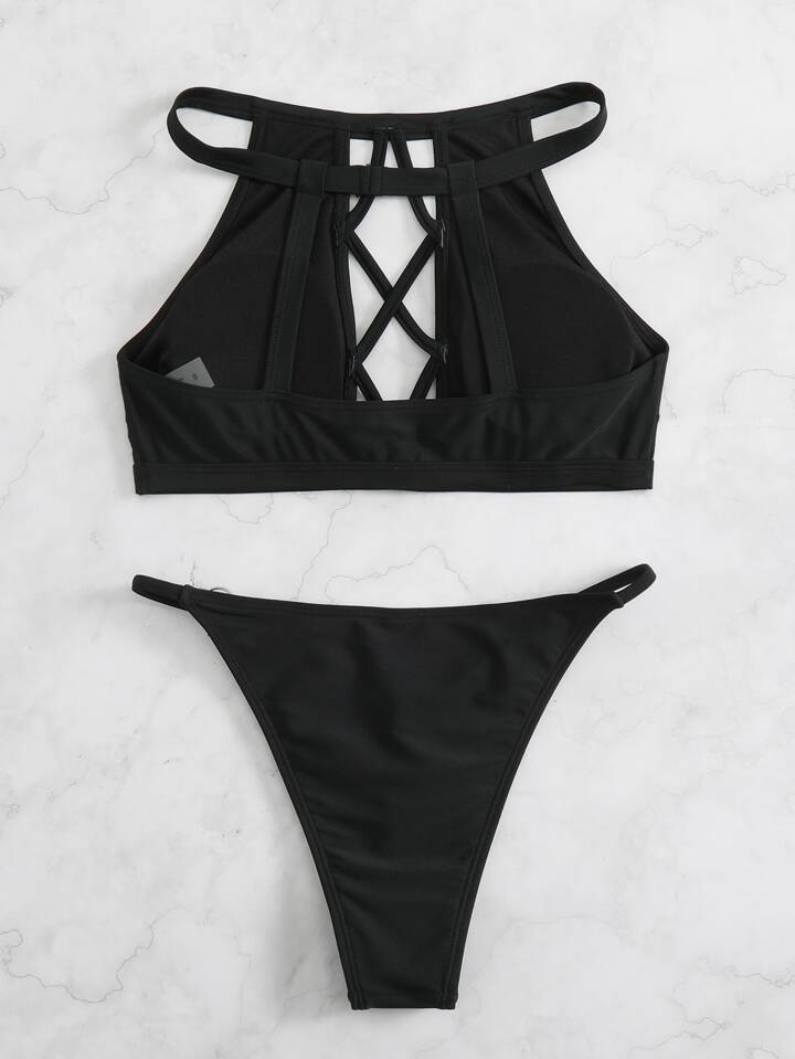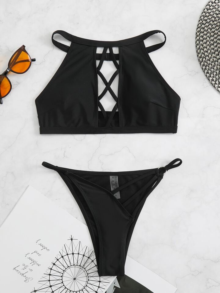 Bikini-Set für den Sommer am Strand mit Schritt-Schritt-Schnitt und Kreuz-Design