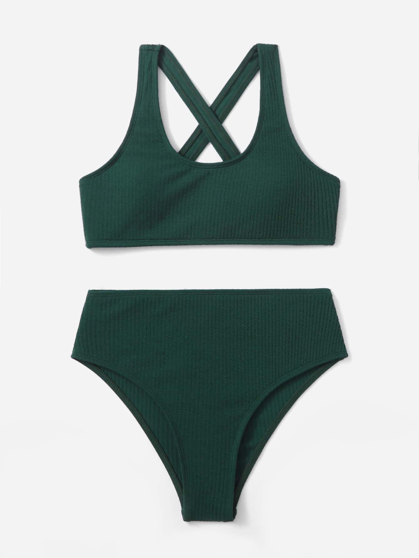 Hoch taillierter Bikini mit Kreuzträgern