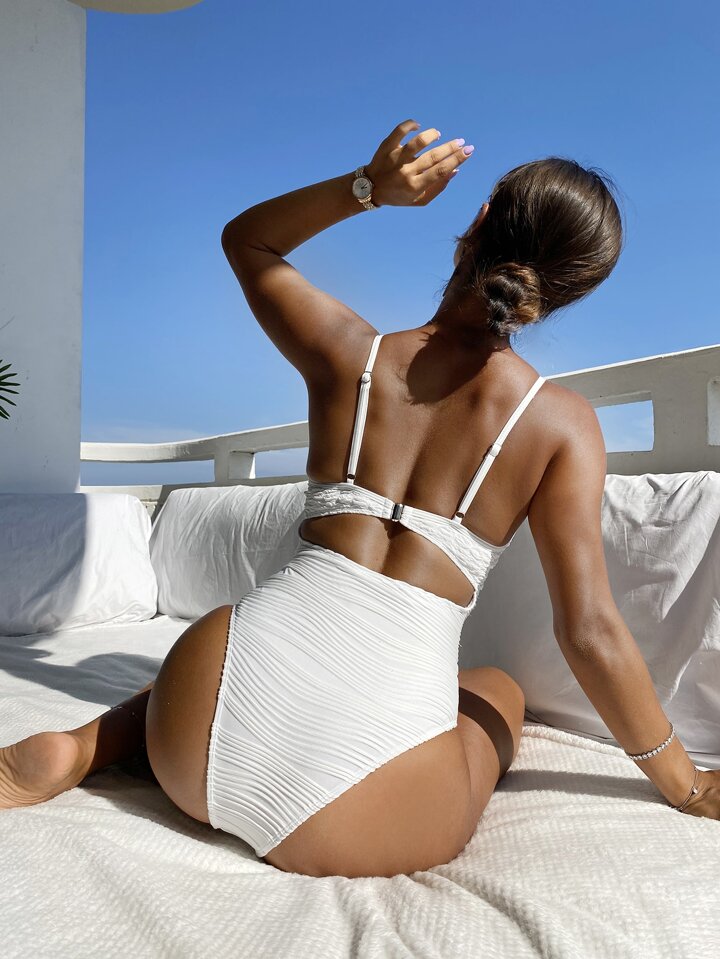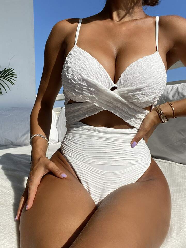 Badeanzug mit Kreuzgurt vorne, Ausschnitt
